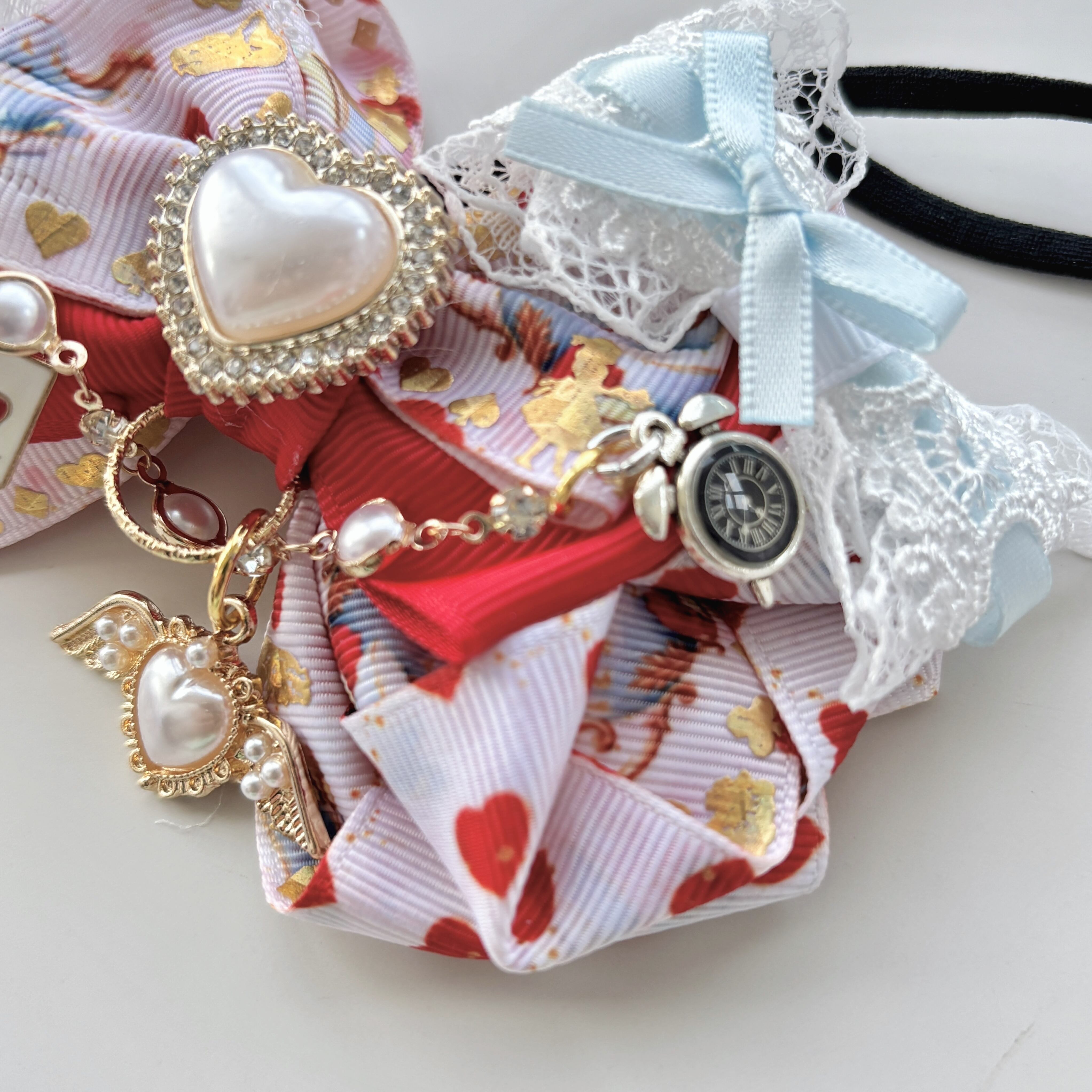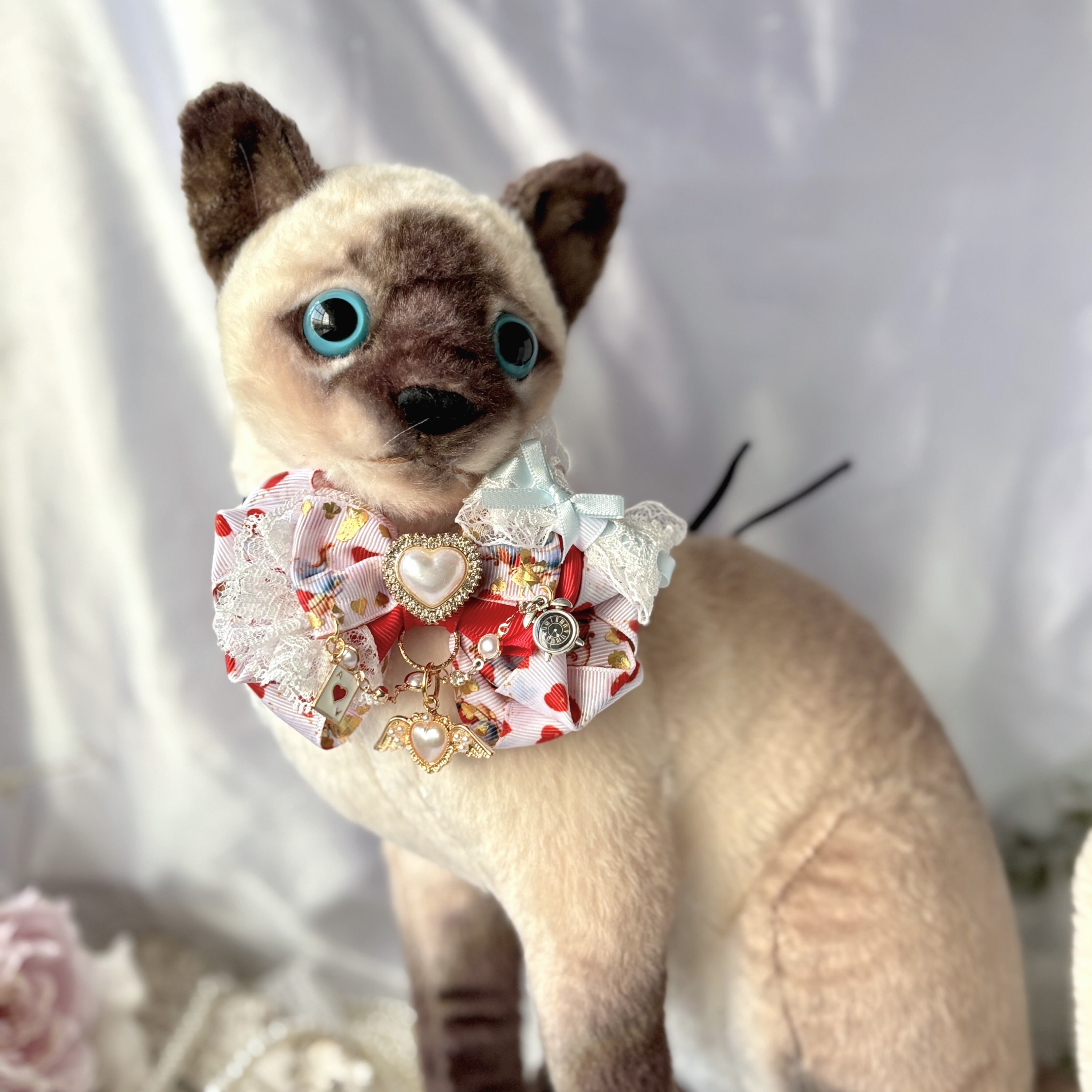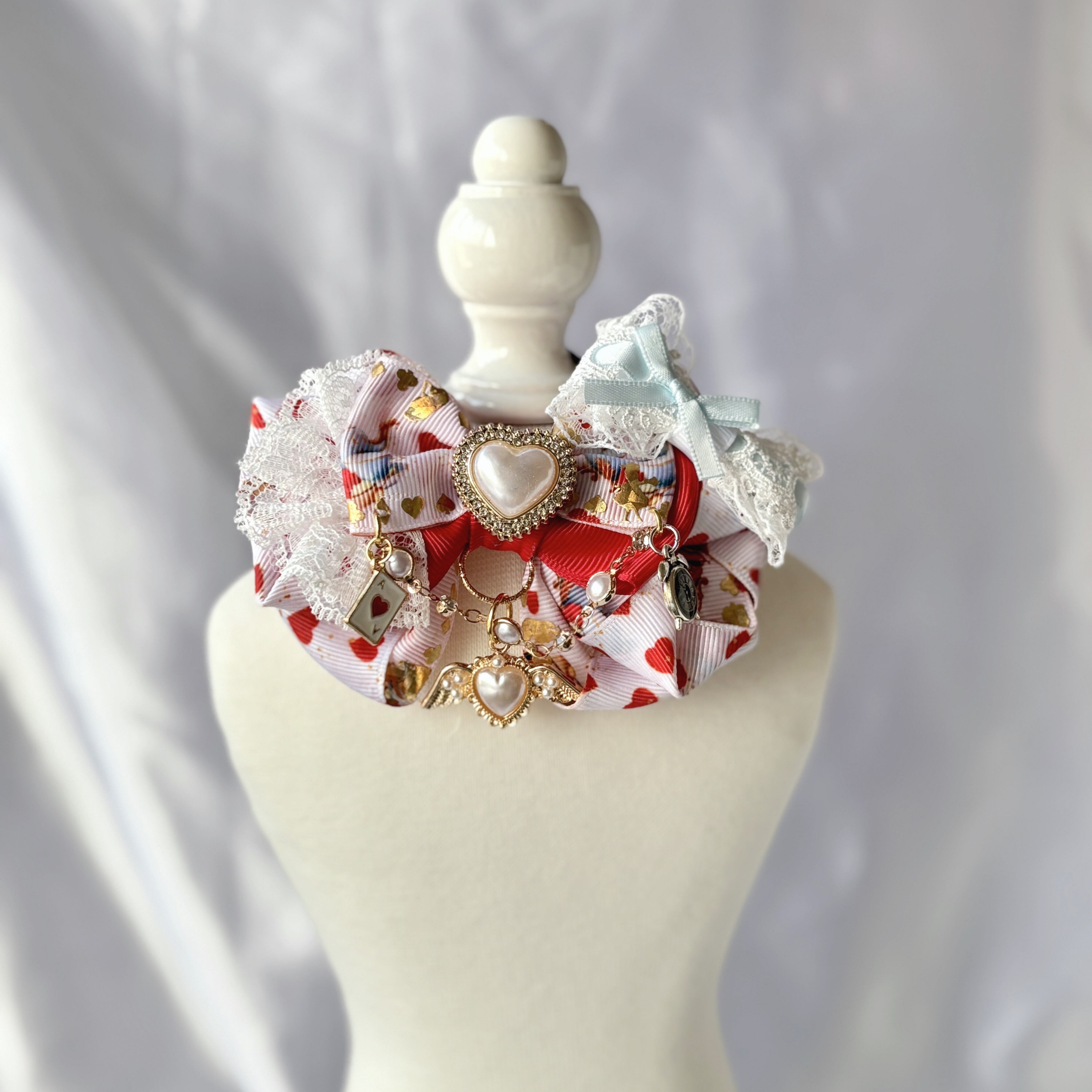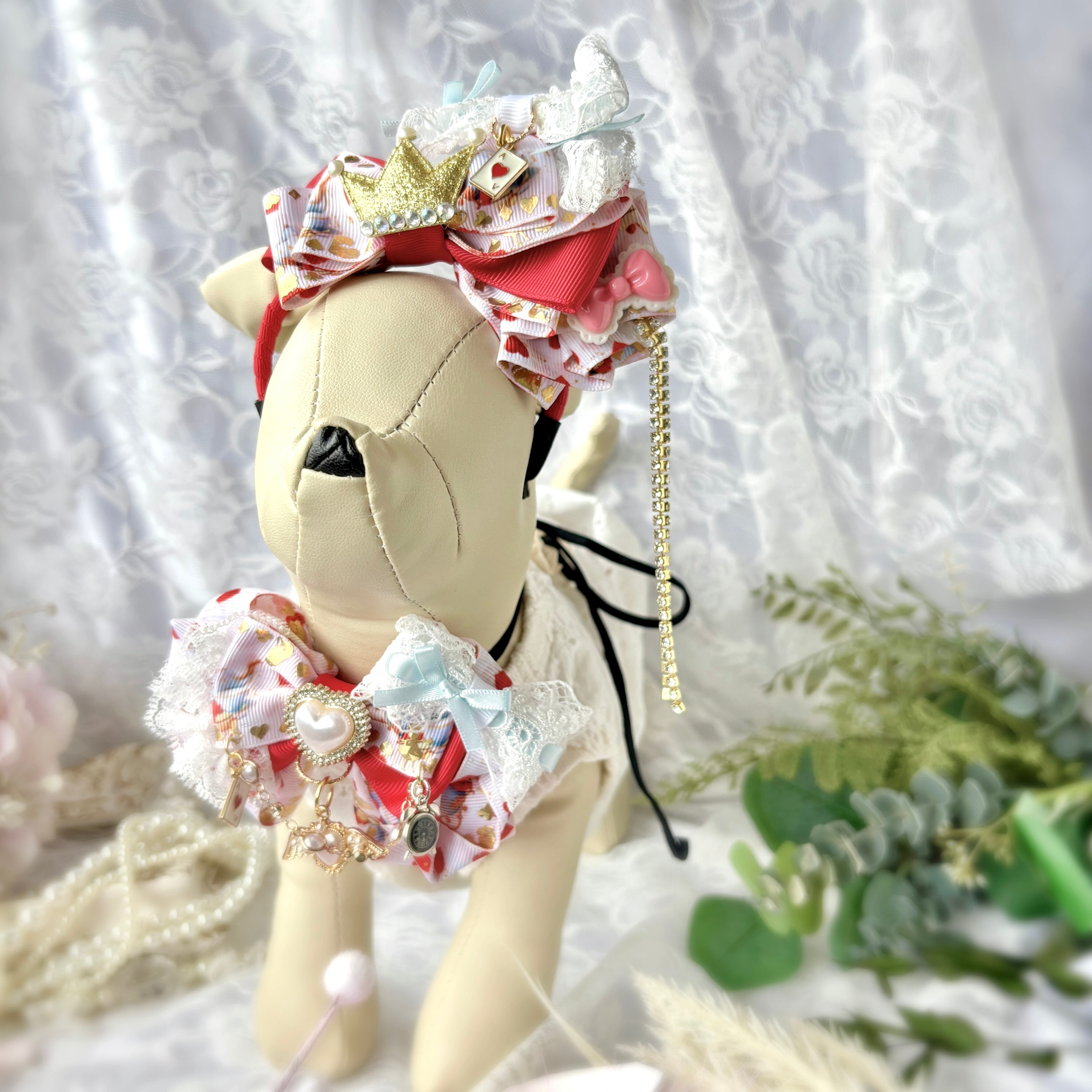 【トランプの国チョーカー】プリンセスリボン 撮影用 ペット用 プレゼント ギフト イベント用 猫 犬 薔薇デザイン