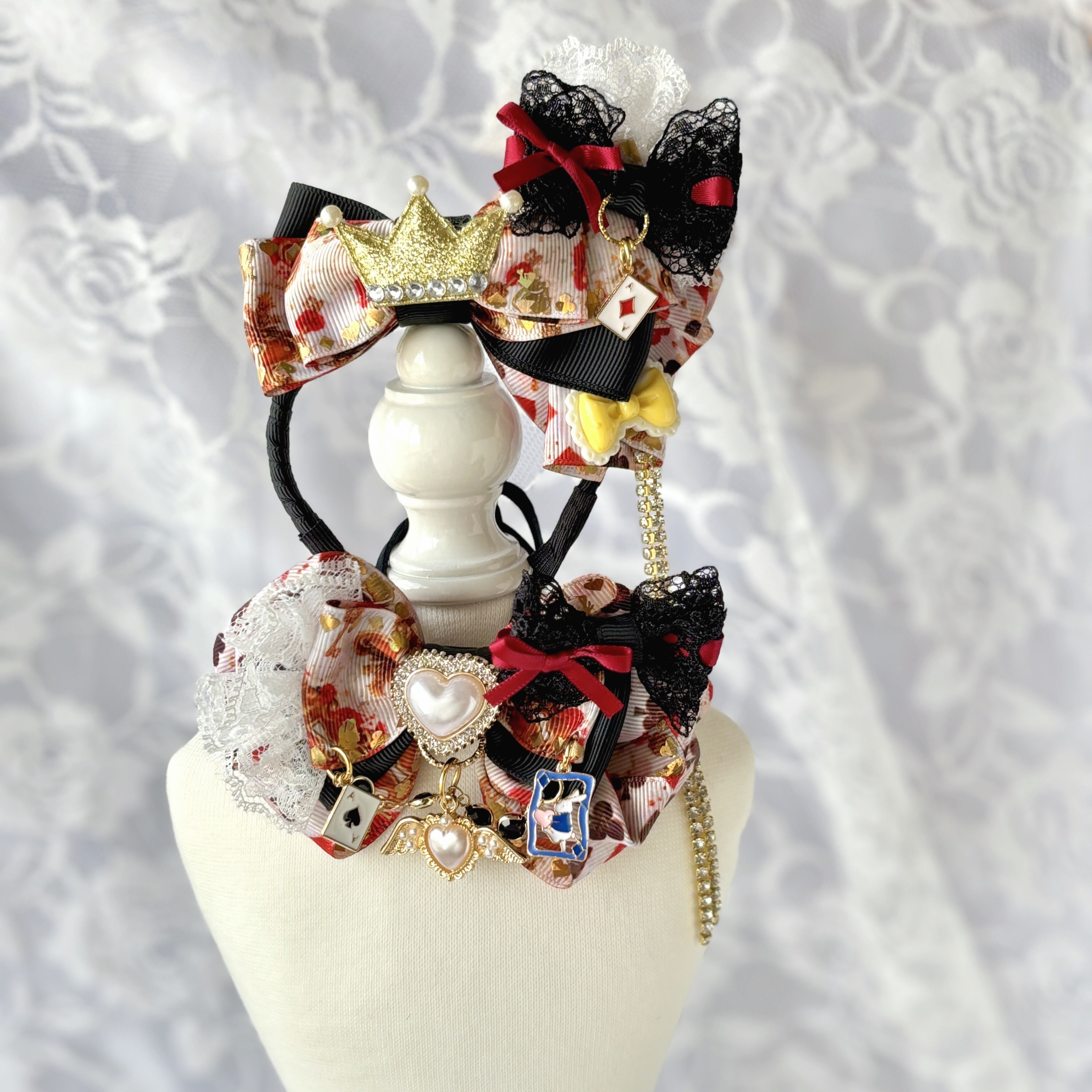 【トランプの国チョーカー】プリンセスリボン 撮影用 ペット用 プレゼント ギフト イベント用 猫 犬 薔薇デザイン