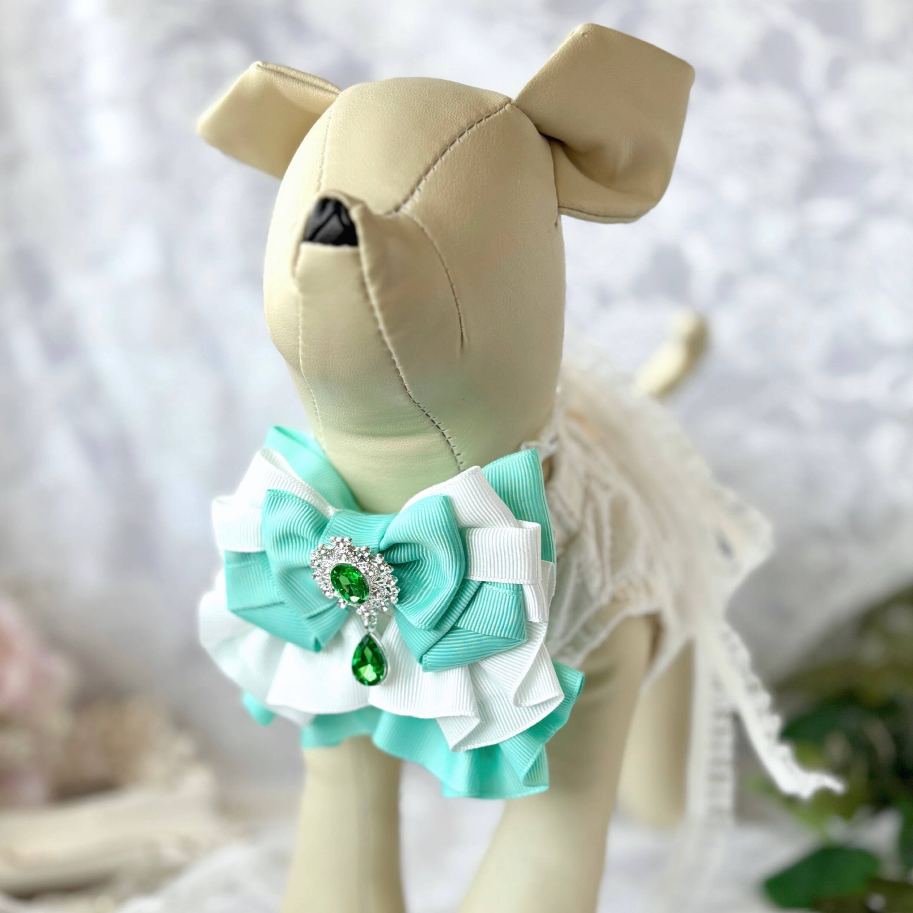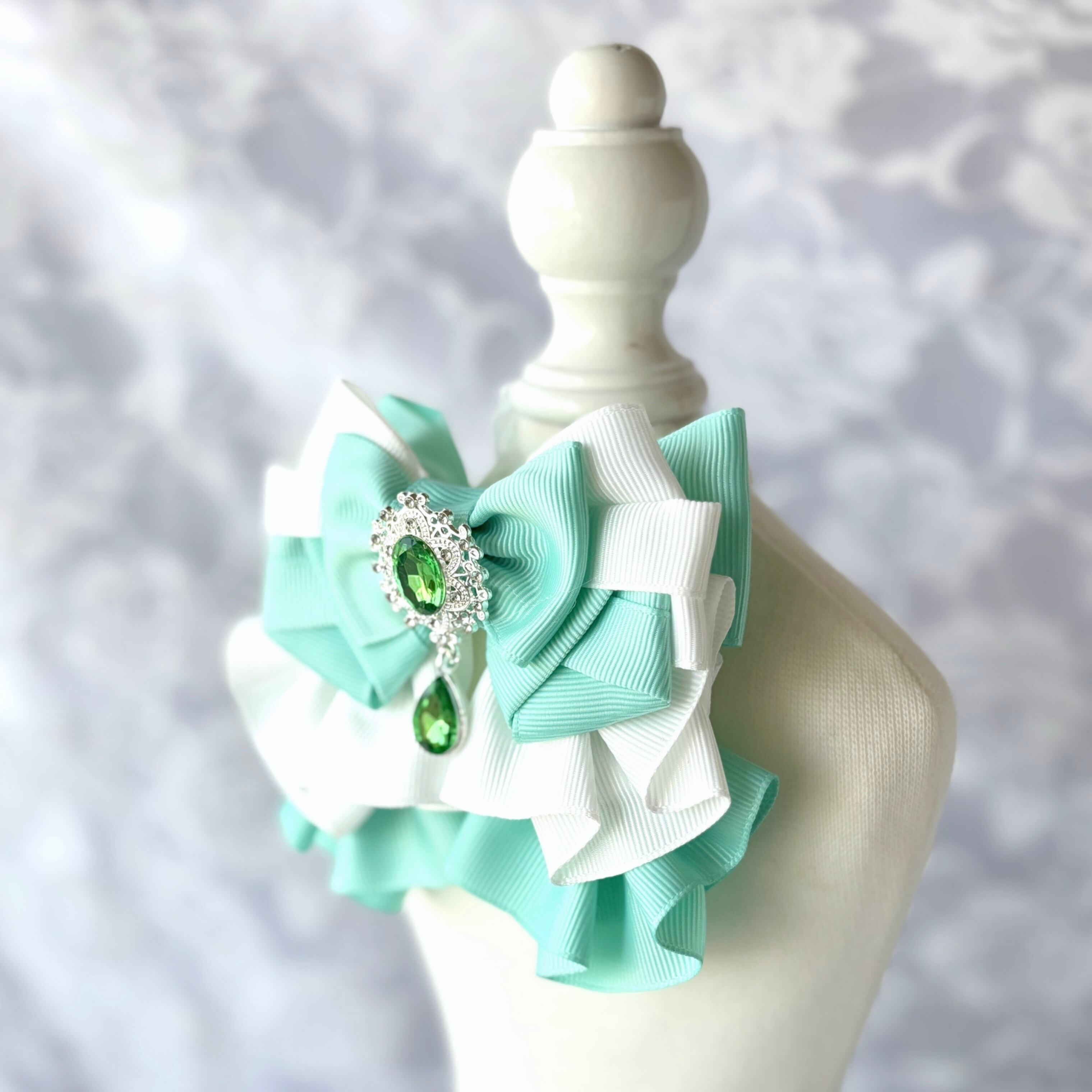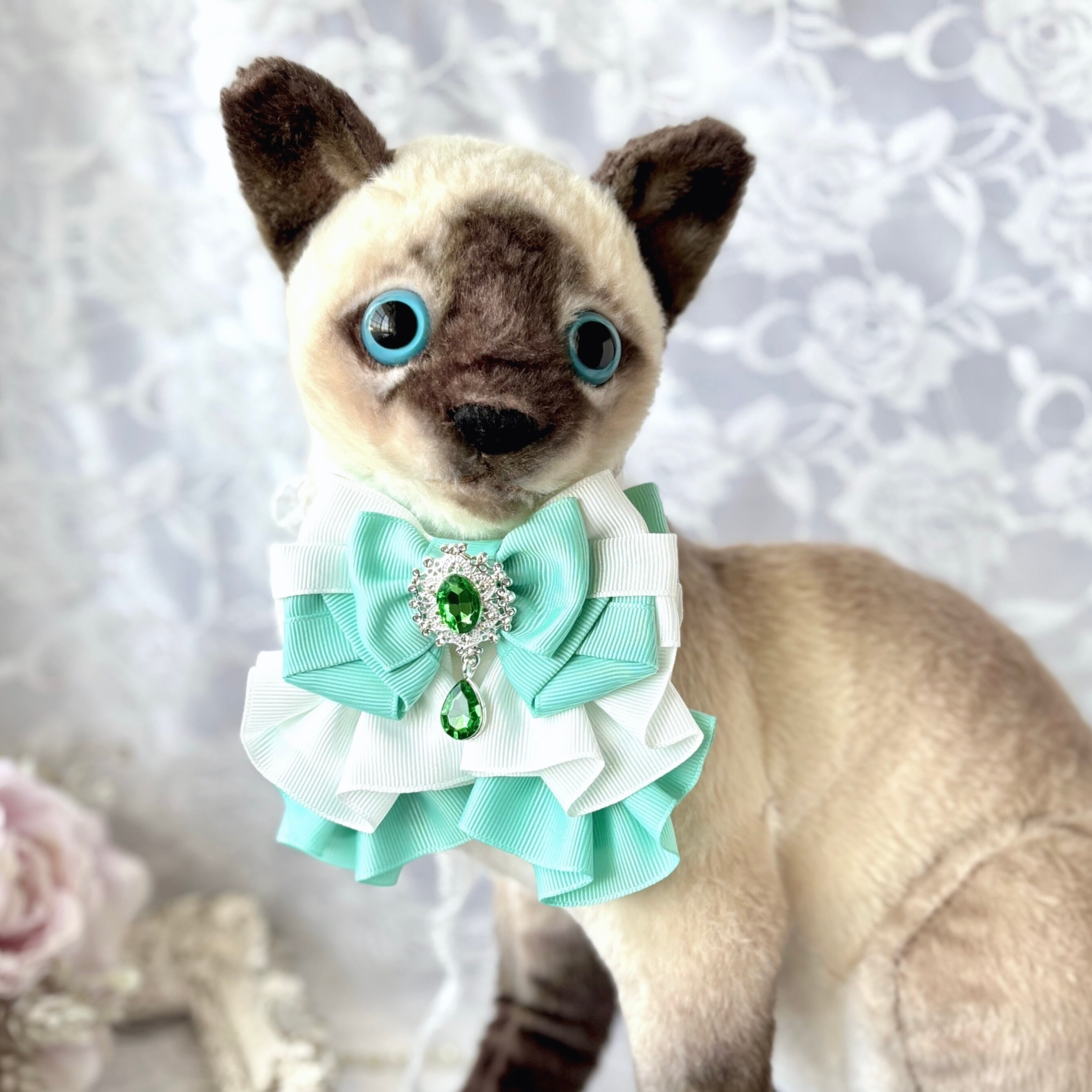 【version upチャーミーフリルリボンリボンチョーカー】ペット用 ギフト イベント 撮影用 レースゴム使用 犬 猫 ティファニーグリーン