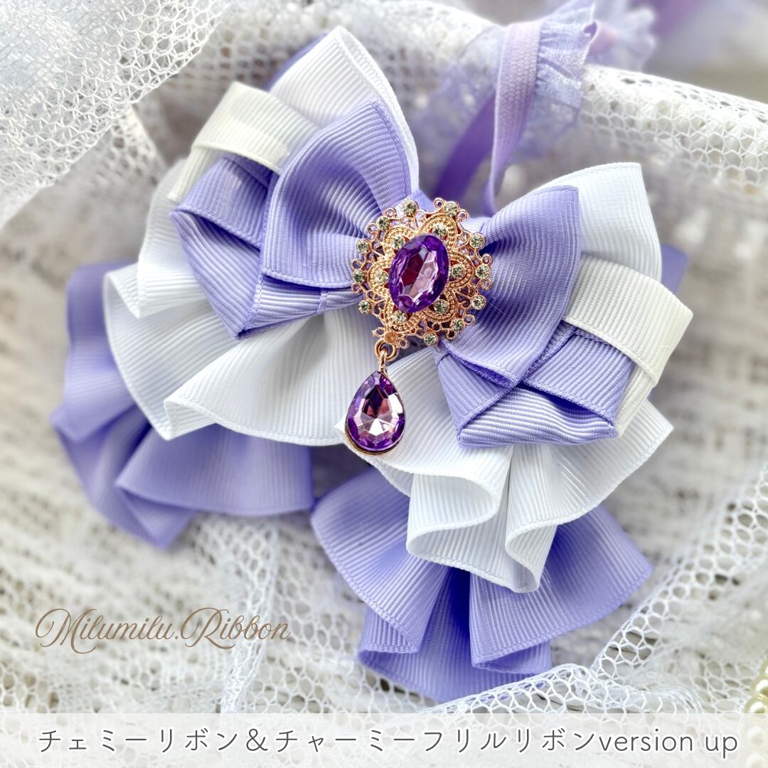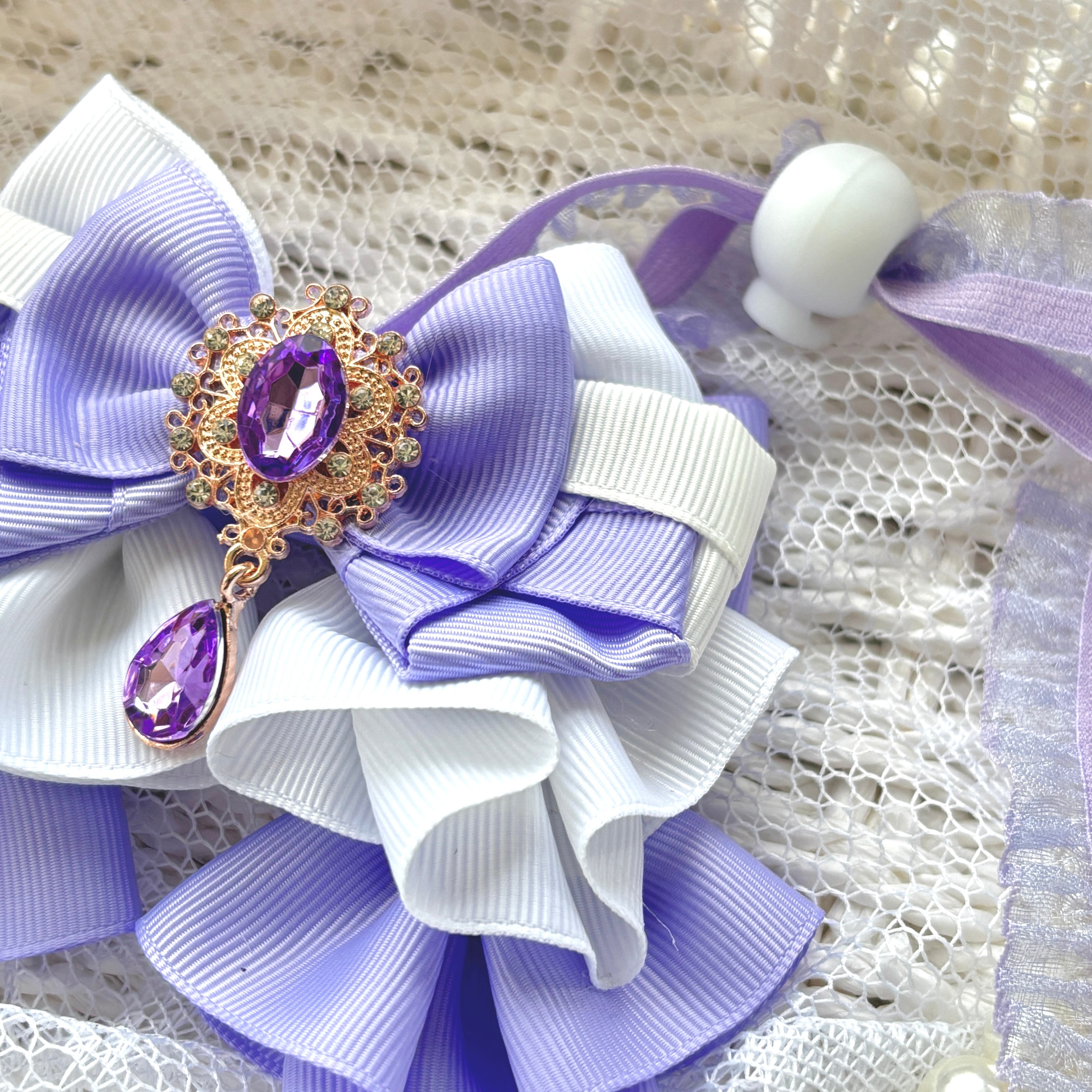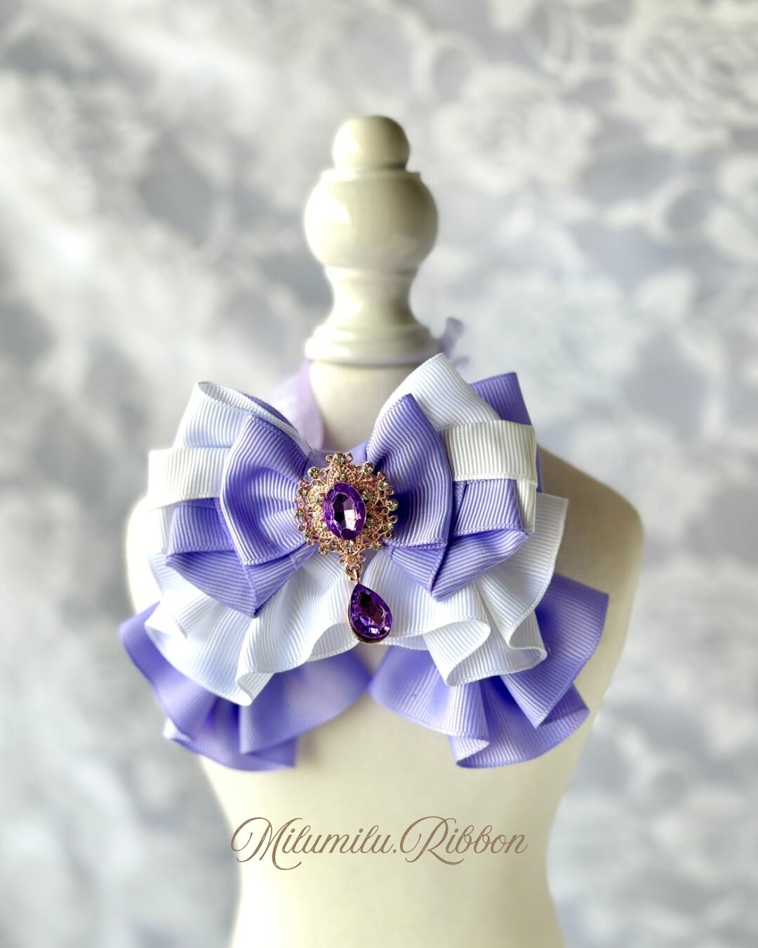 【version upチャーミーフリルリボンリボンチョーカ】ペット用 ギフト イベント 撮影用 レースゴム使用 犬 猫 パープル