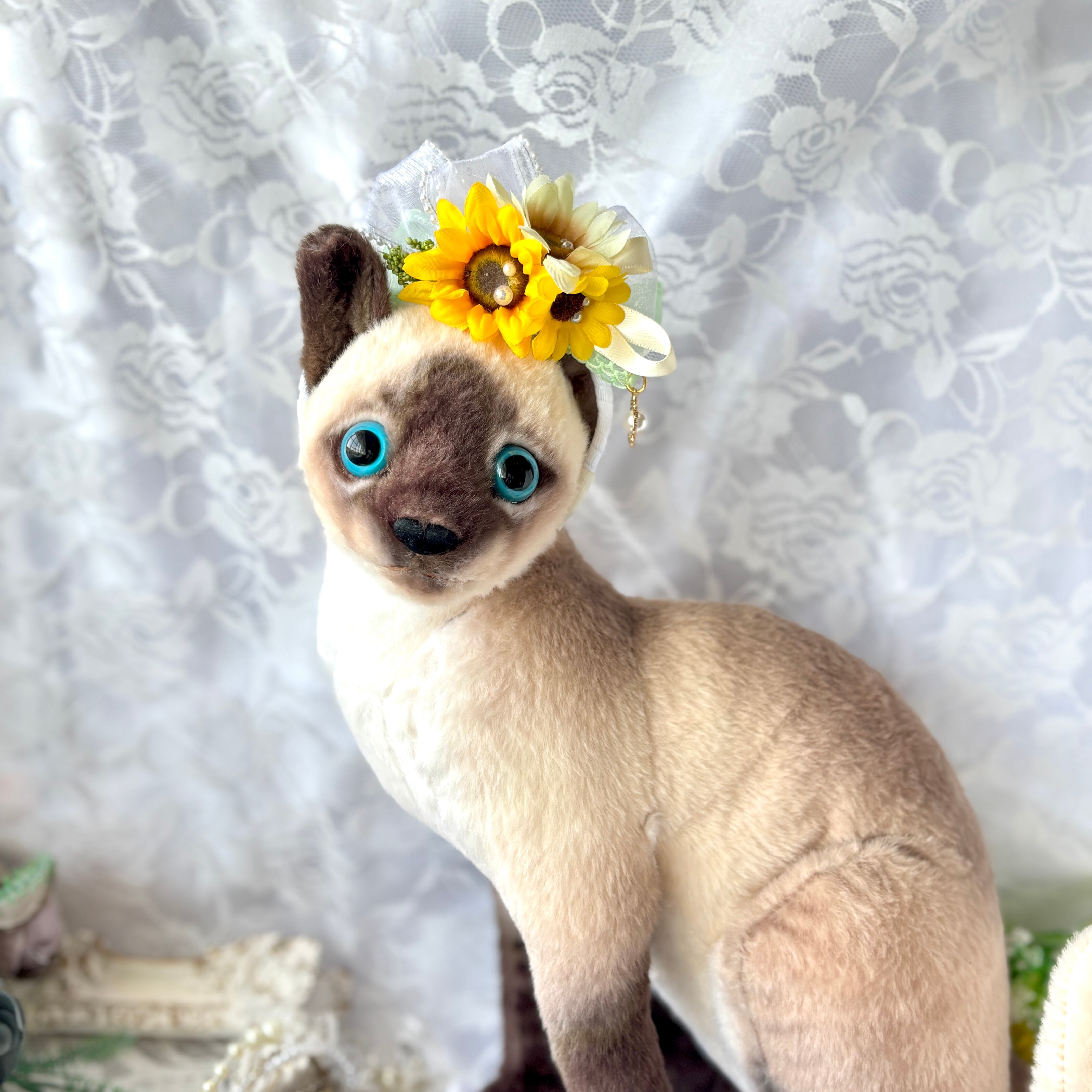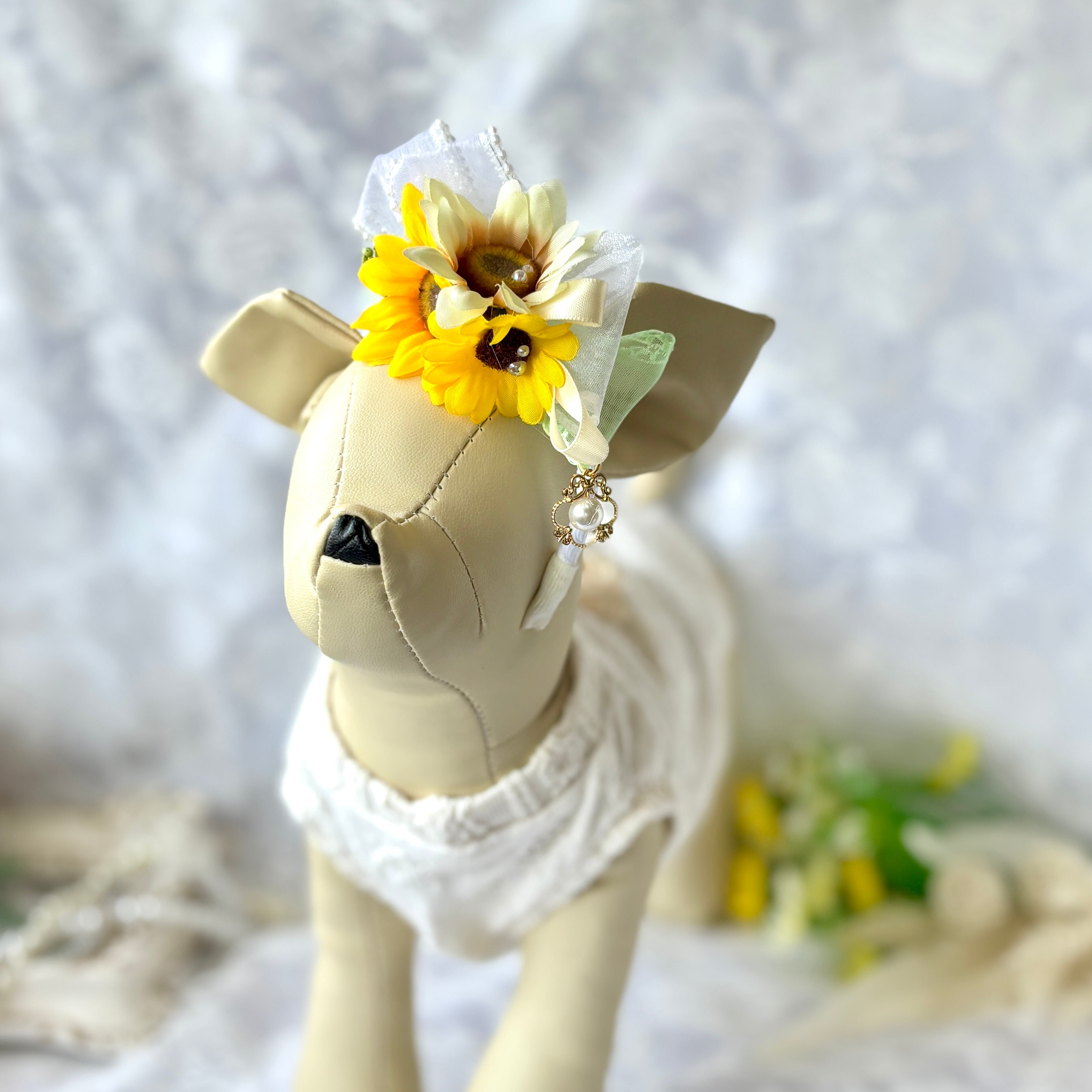 【向日葵オーガンジーカチューシャ】撮影用 ペット用 プレゼント イベント用 猫 犬 夏リボン 浴衣