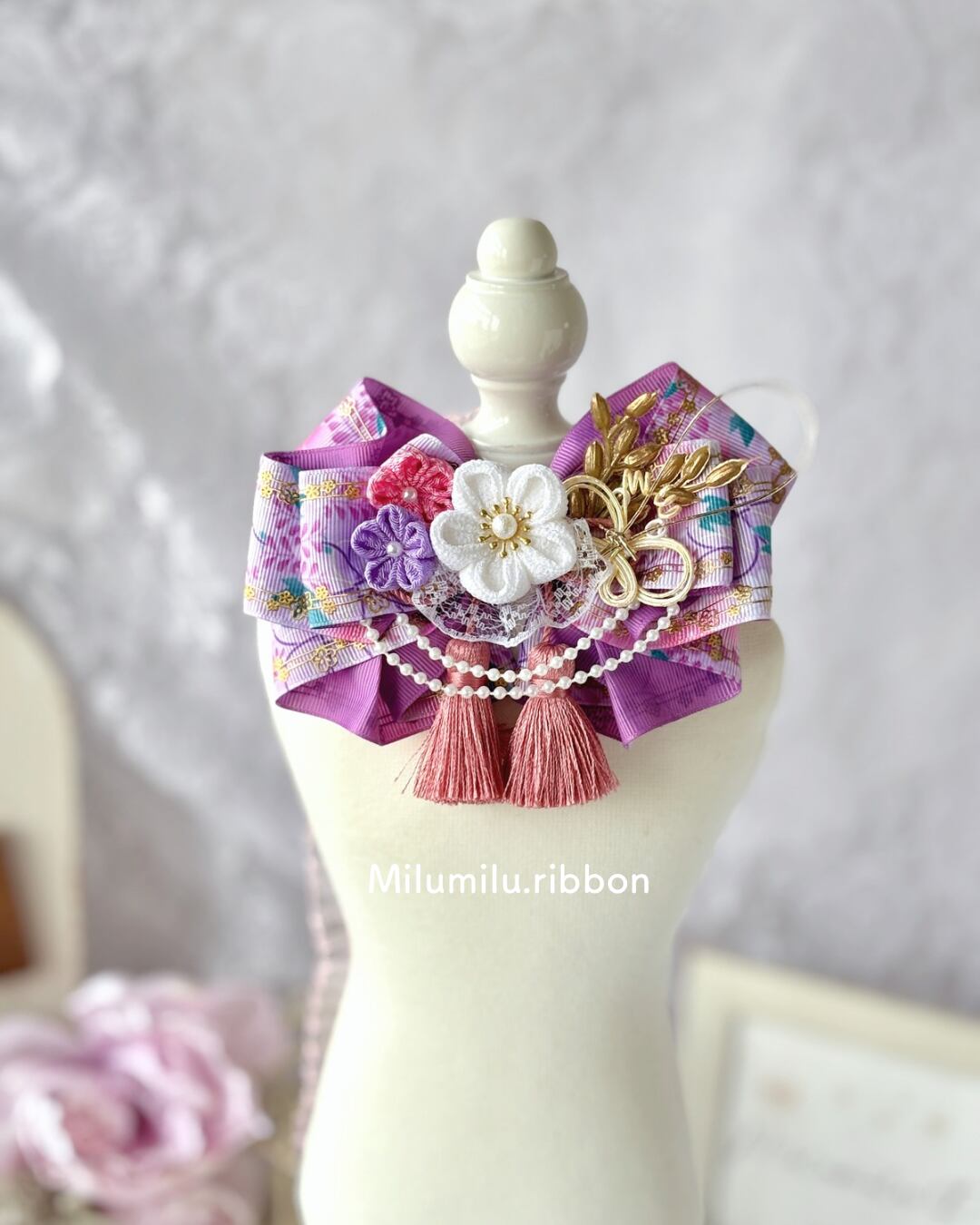 金襴の華やかな和柄リボンをベースに