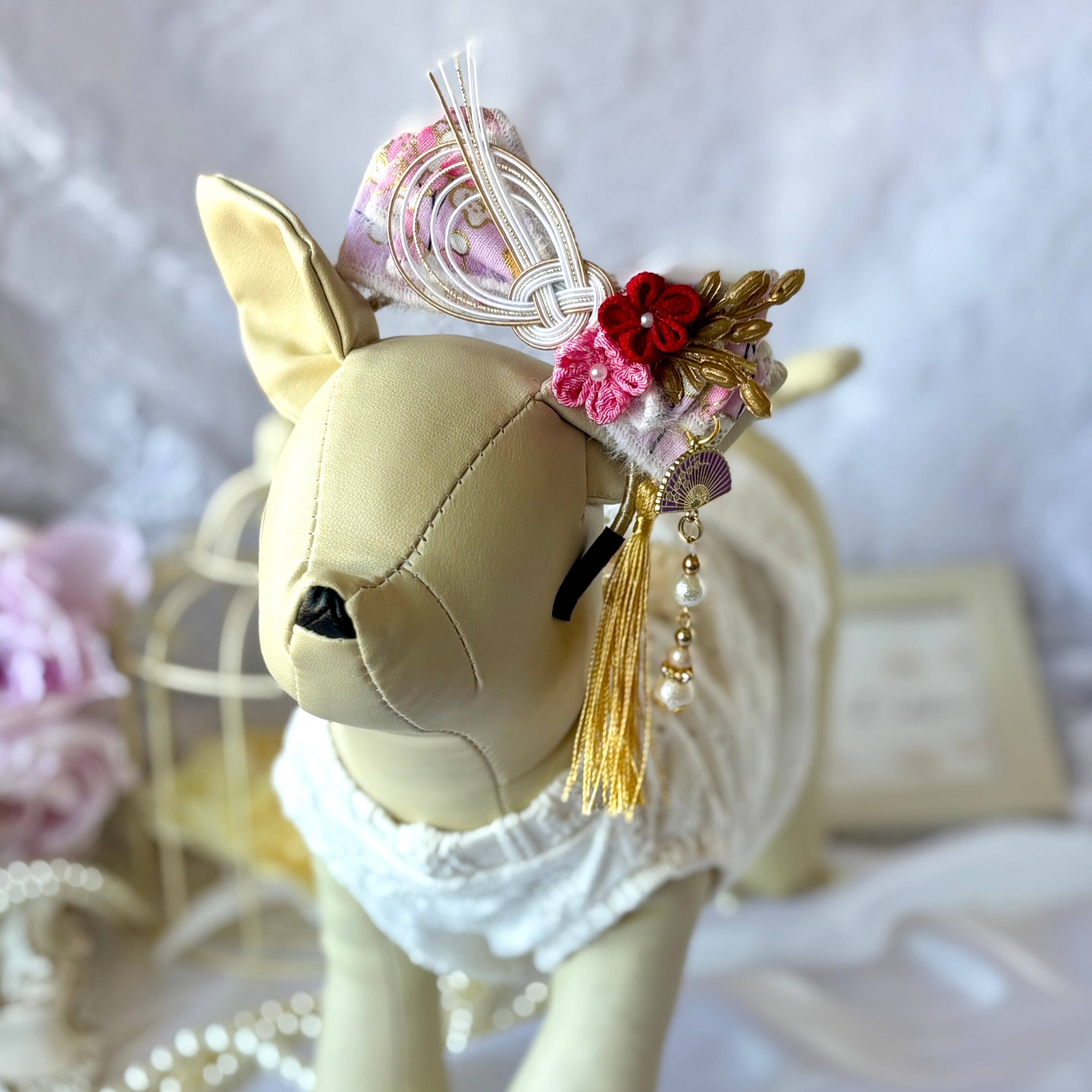 【祝結(しゅくむすび)】雅(みやび) ペット用カチューシャ お正月 七五三 イベント 撮影会 プレゼント