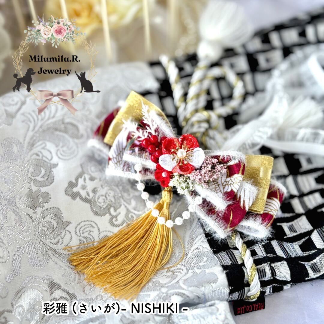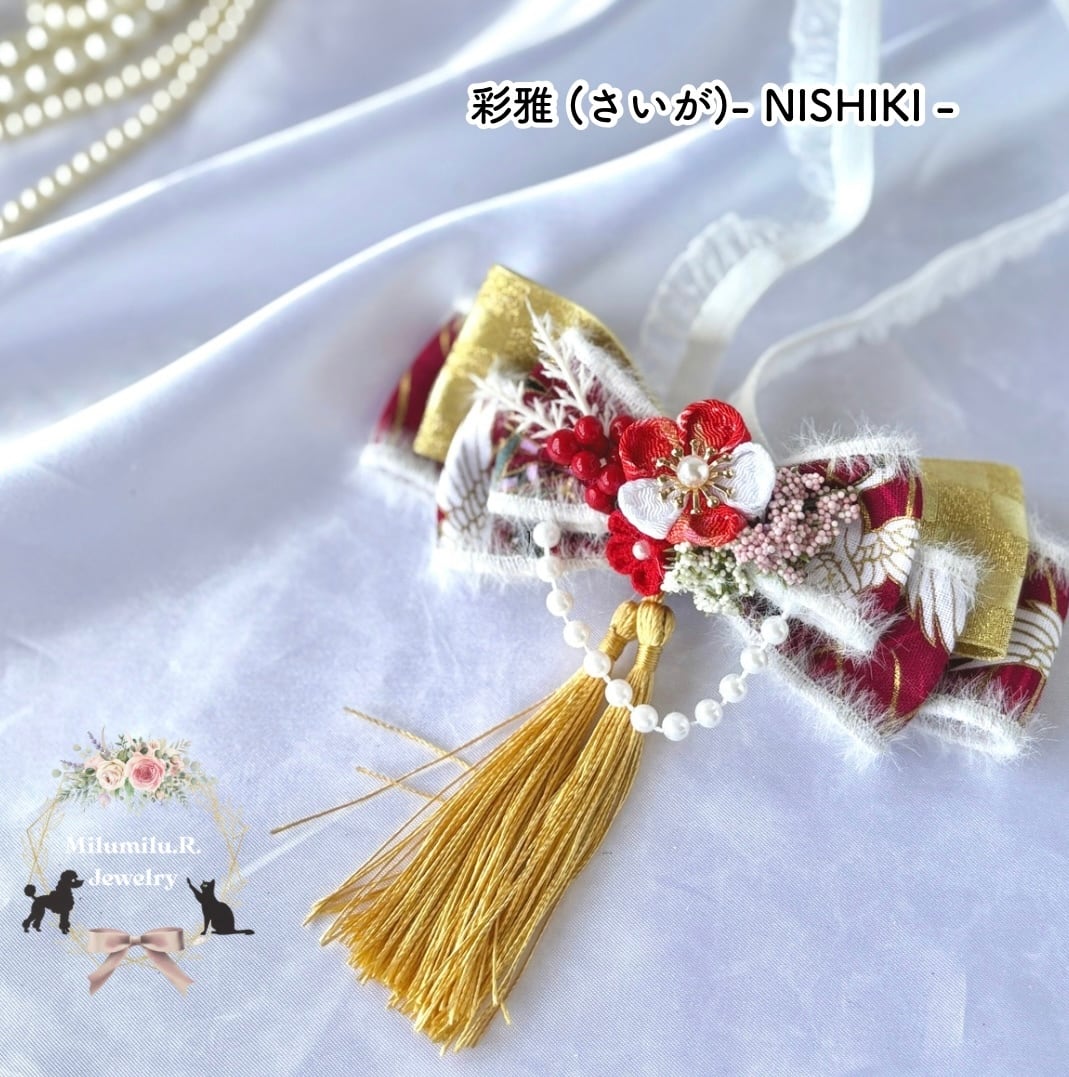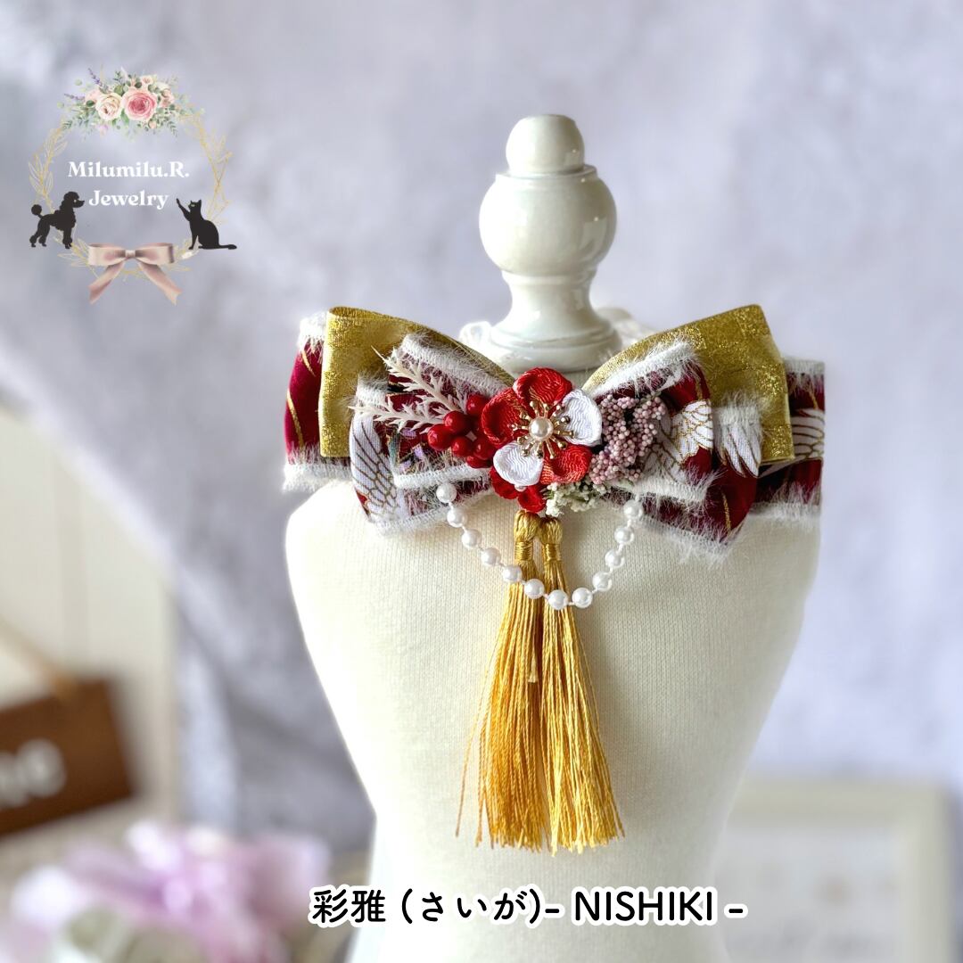【彩雅(さいが) - NISHIKI -】上質和柄の晴れ着リボンチョーカー | ペット用チョーカー 猫 犬 記念日 お正月 七五三 ひな祭り