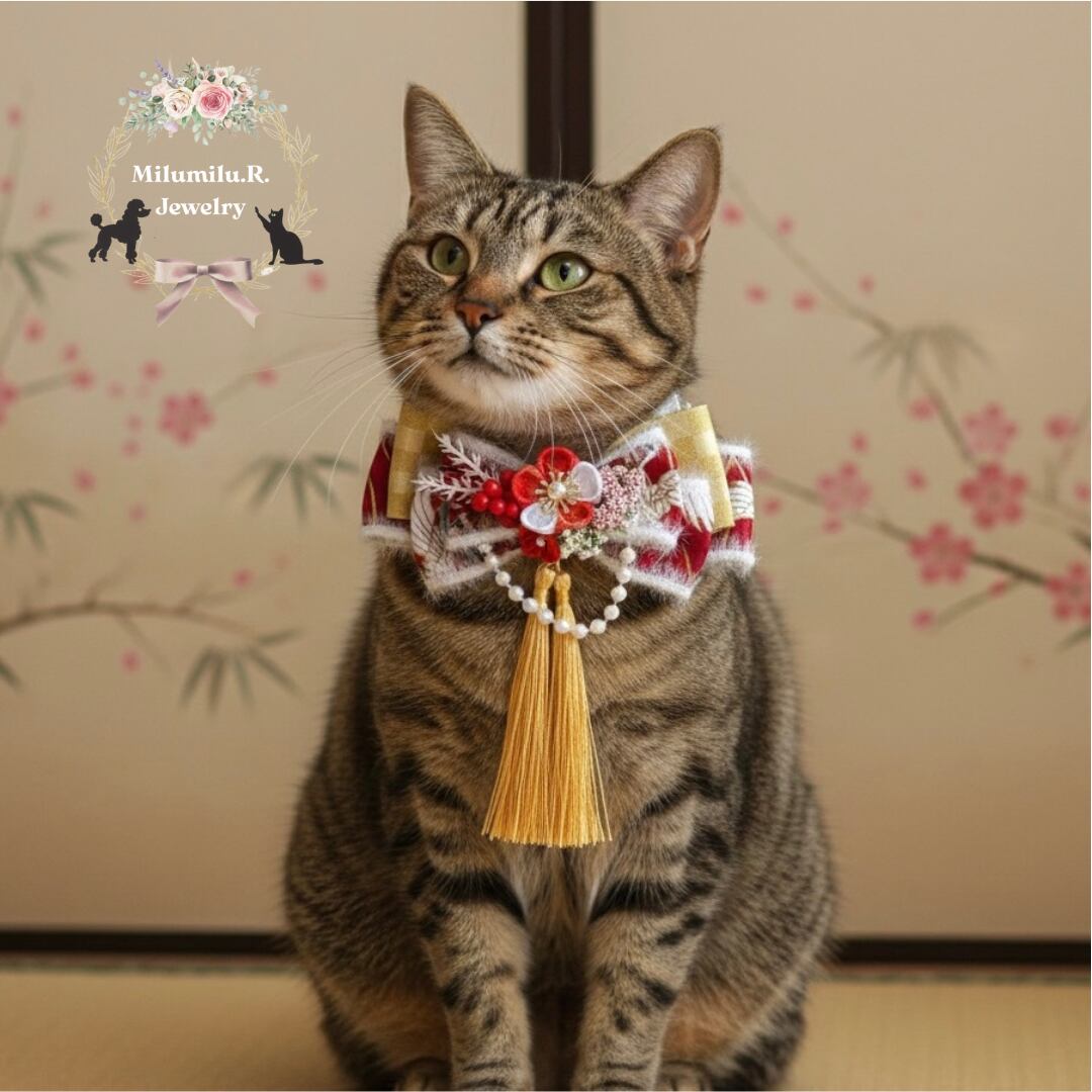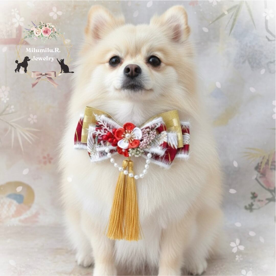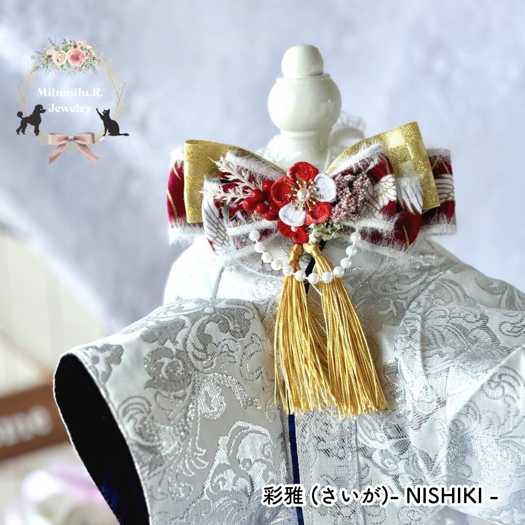 【彩雅(さいが) - NISHIKI -】上質和柄の晴れ着リボンチョーカー | ペット用チョーカー 猫 犬 記念日 お正月 七五三 ひな祭り