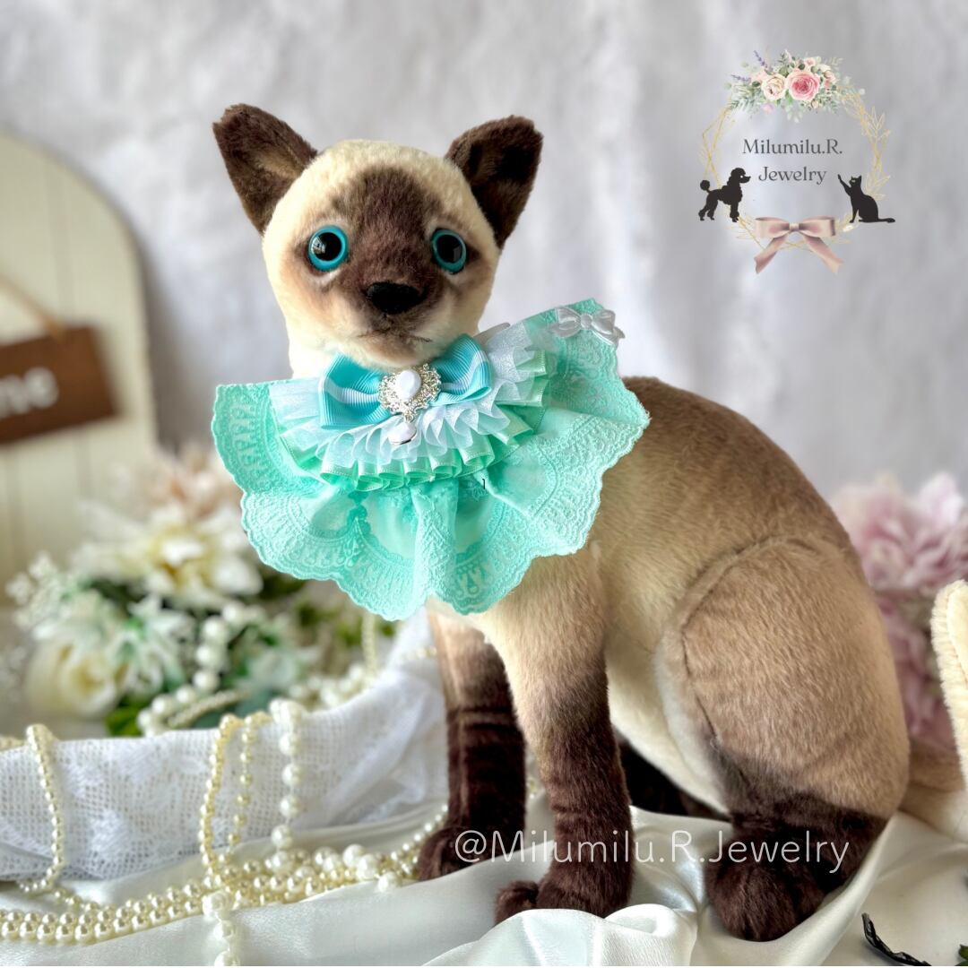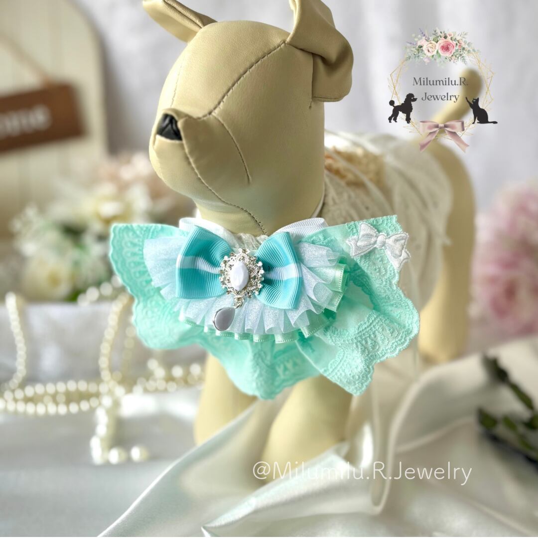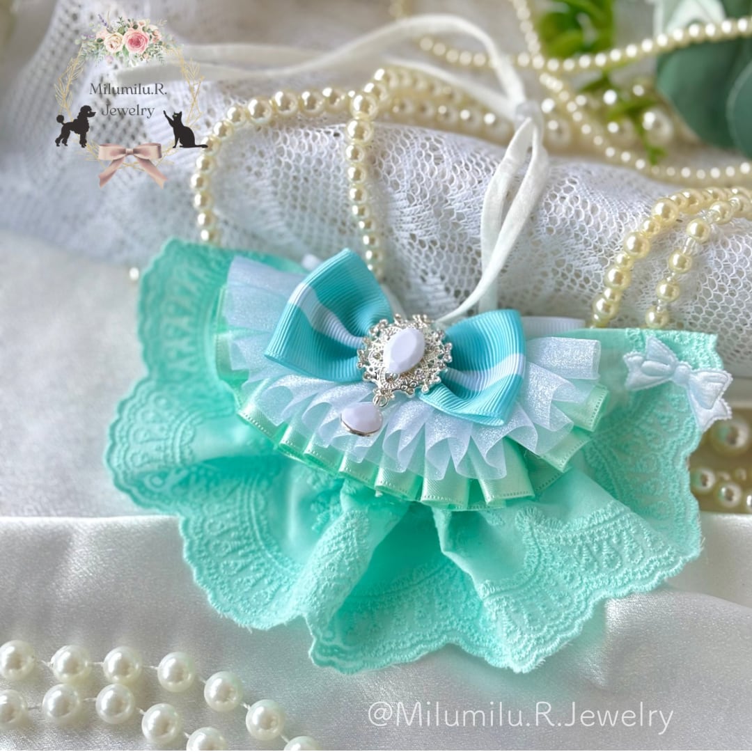 受注販売♡再販【宝石箱のフリルチョーカー ♡Tiffany Green & Bijou】ペット用チョーカー 猫 犬 記念日 撮影用 イベント