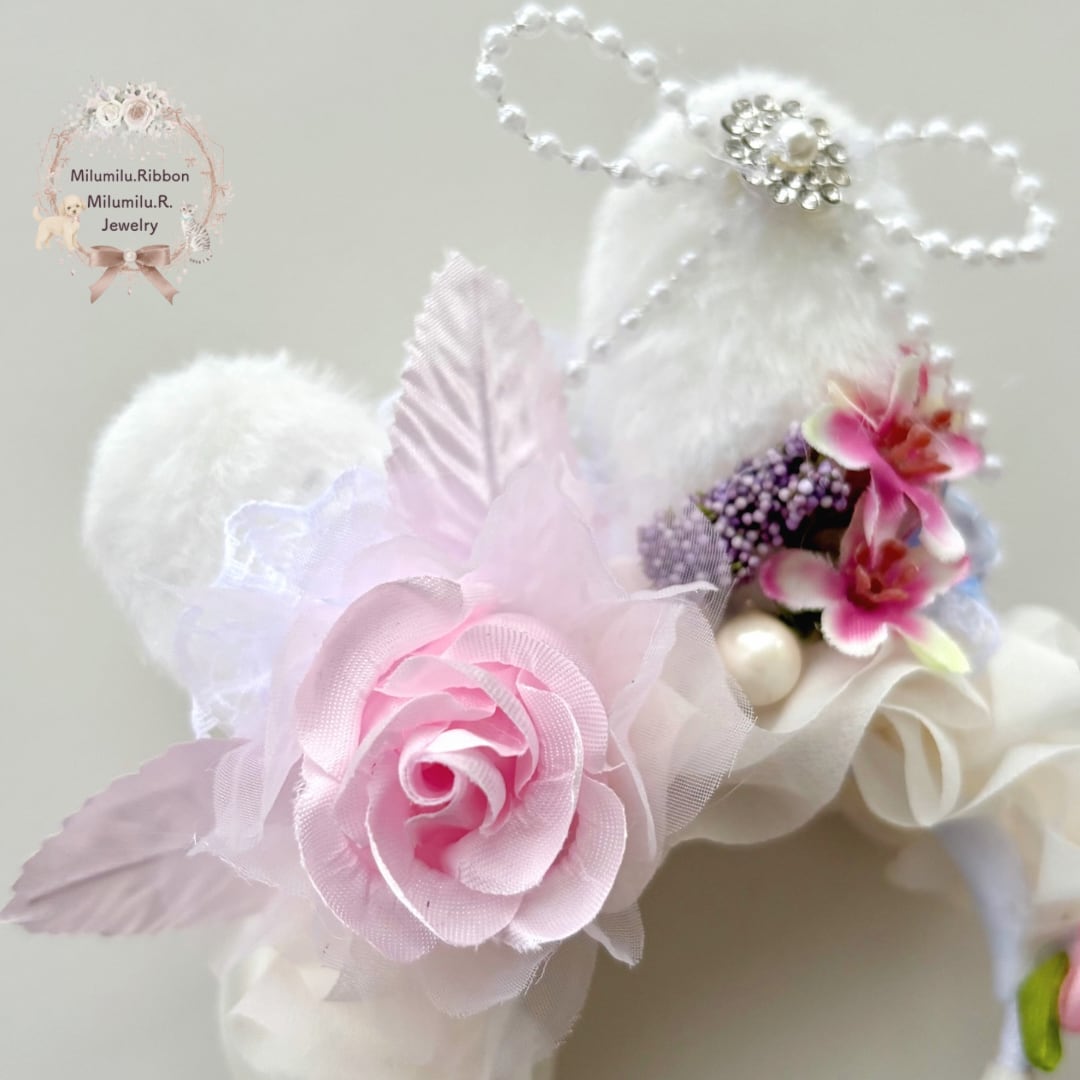イースター【Noble Rose Bunny(ノーブル・ローズ・バニー) ~気品ある薔薇のうさ耳~】春リボン 撮影用 ペット用 プレゼント イベント用 猫 犬 桜 薔薇 ペット用カチューシャ
