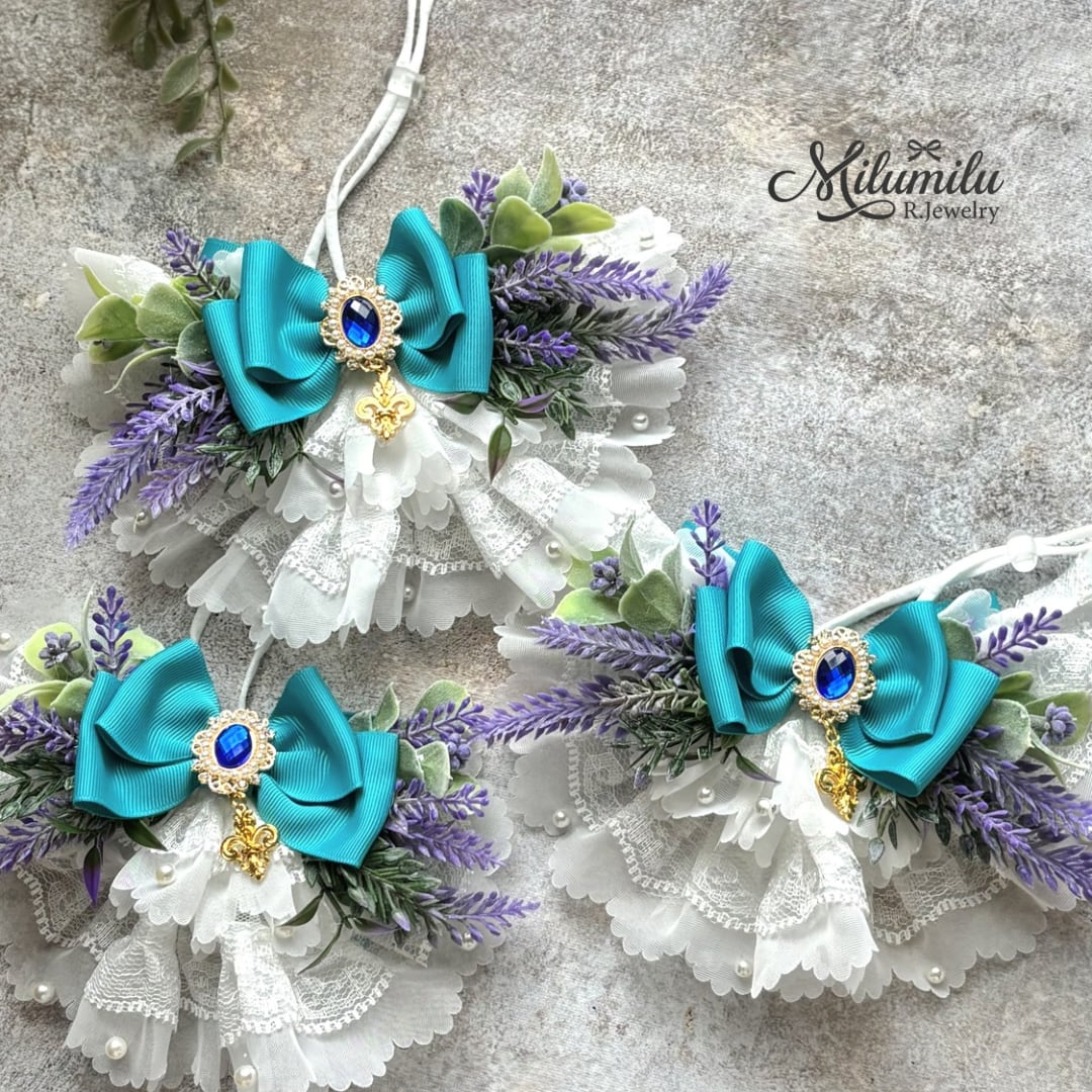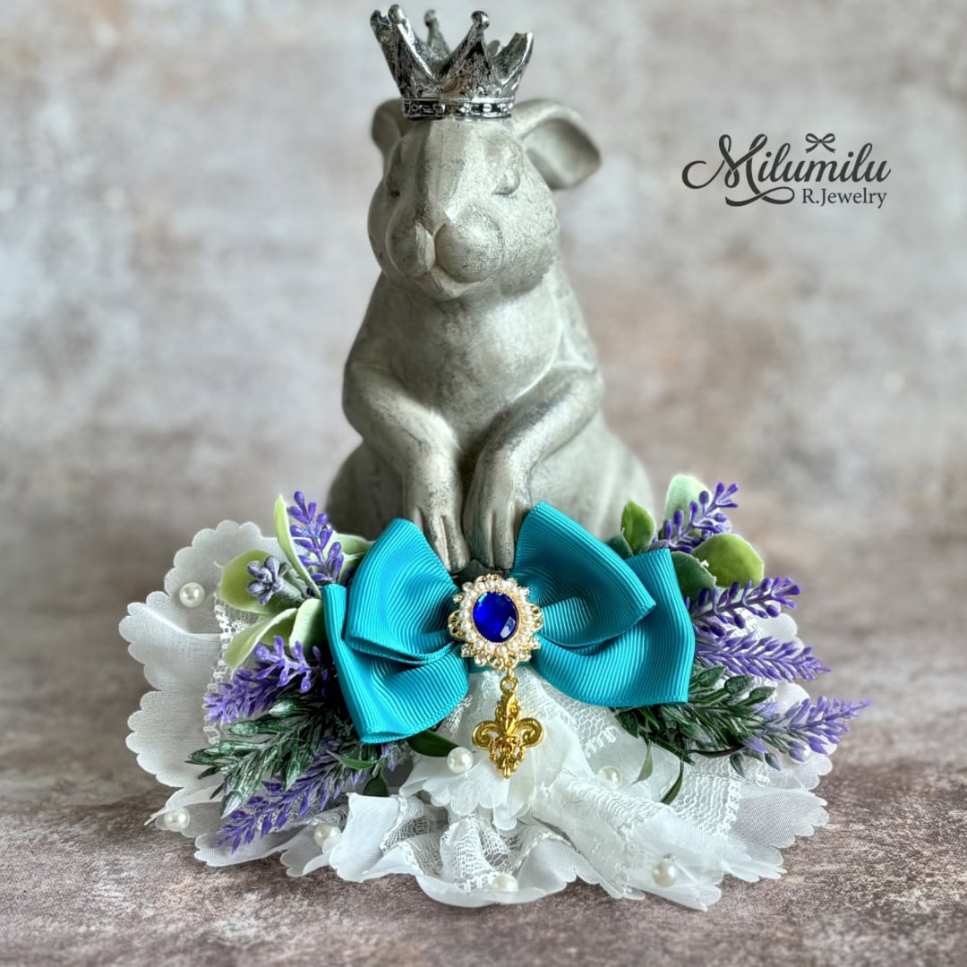 【宮廷のラベンダー♥ チョーカー】アーティシャルフラワー&リボン ペット用 ギフト イベント 撮影用 ソフトゴム使用 犬 猫 春夏リボン