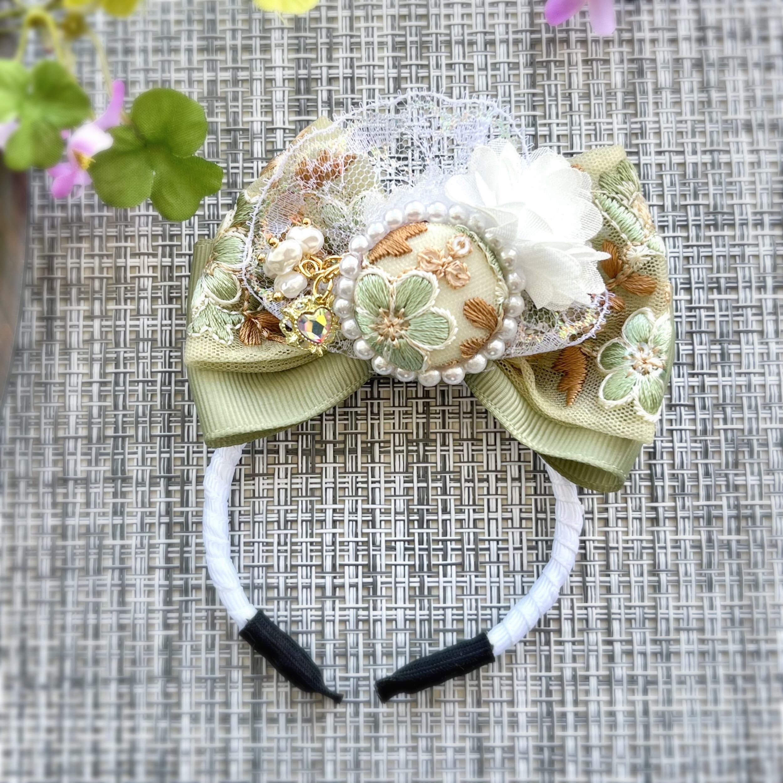 【最高級♡⃛インド刺繍リボン♥カチューシャ】グリーン系 上品さをモットーに