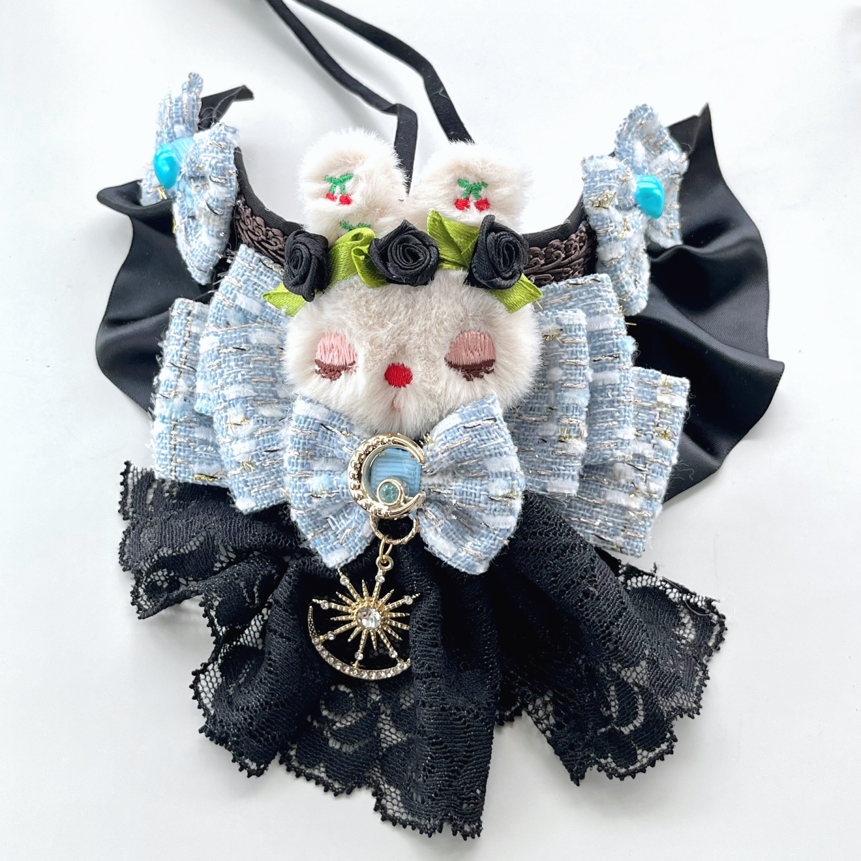 居眠りうさちゃんブルー系 チョーカー土台幅広タイプ