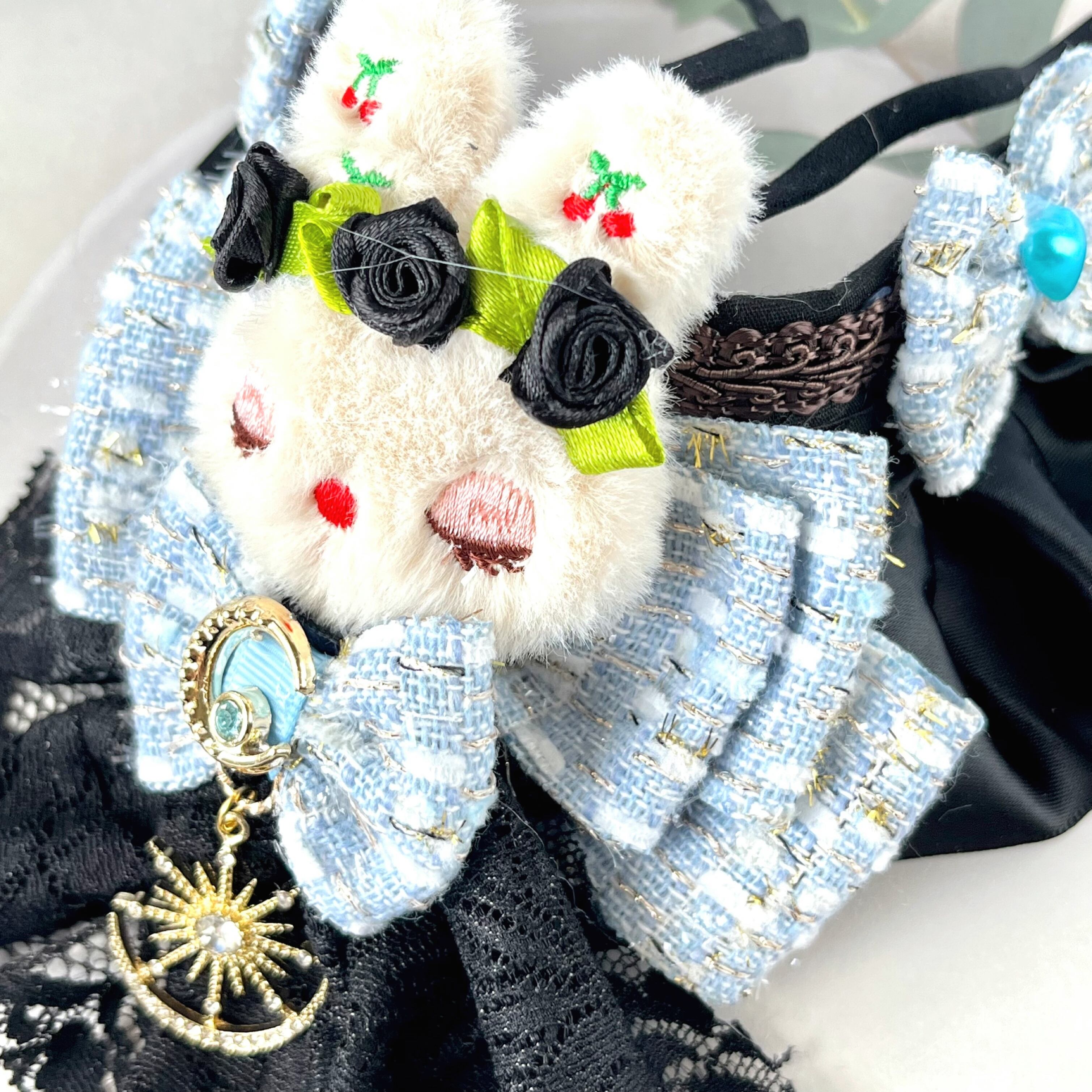 うさぎちゃんにもおでこに飾りをつけて