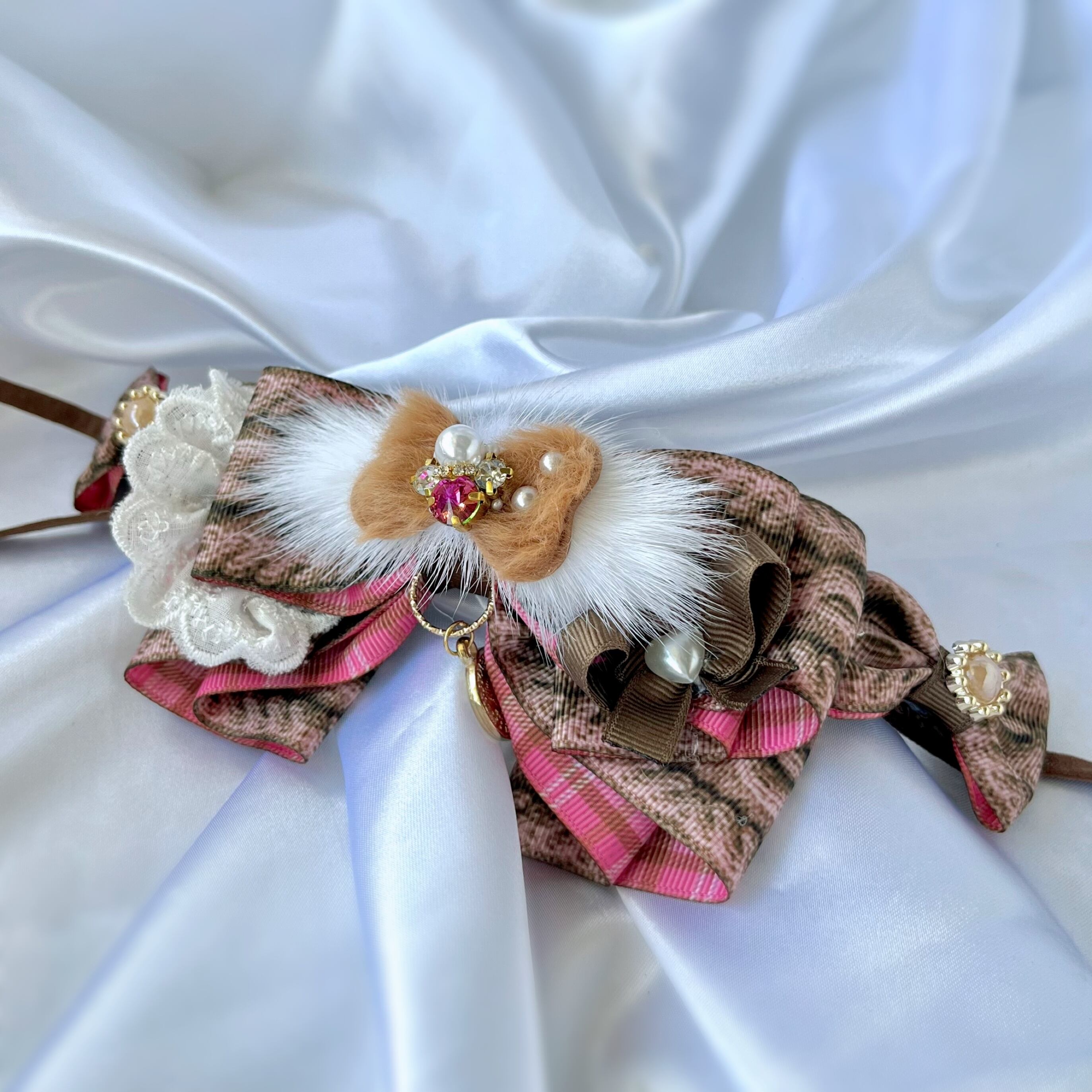 【ファー付き毛糸編み込み模様チョーカー】秋冬用に どこから見ても可愛いチョーカー お首のサイズに合わせて調整可能 撮影用 イベント お誕生日 プレゼント ペット用