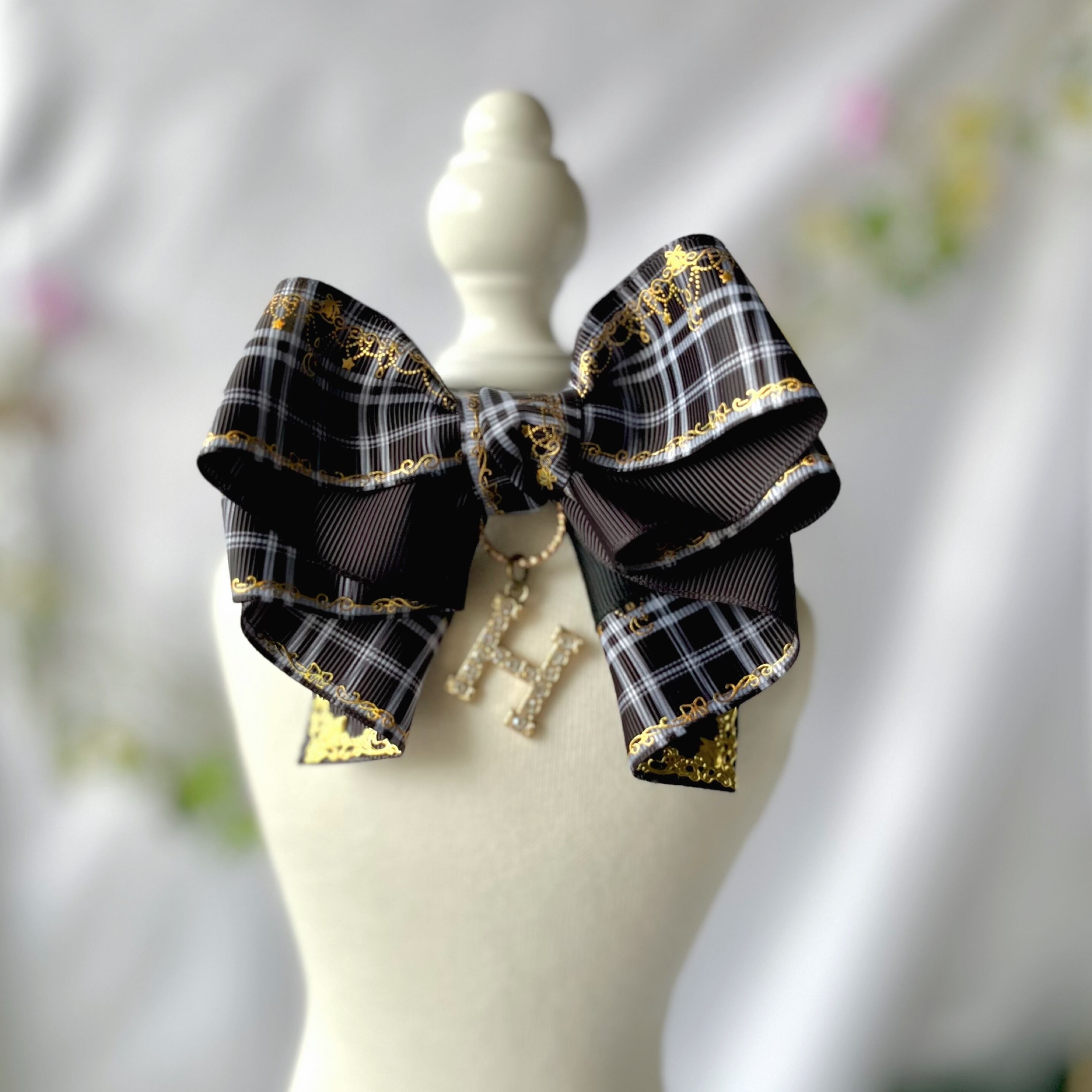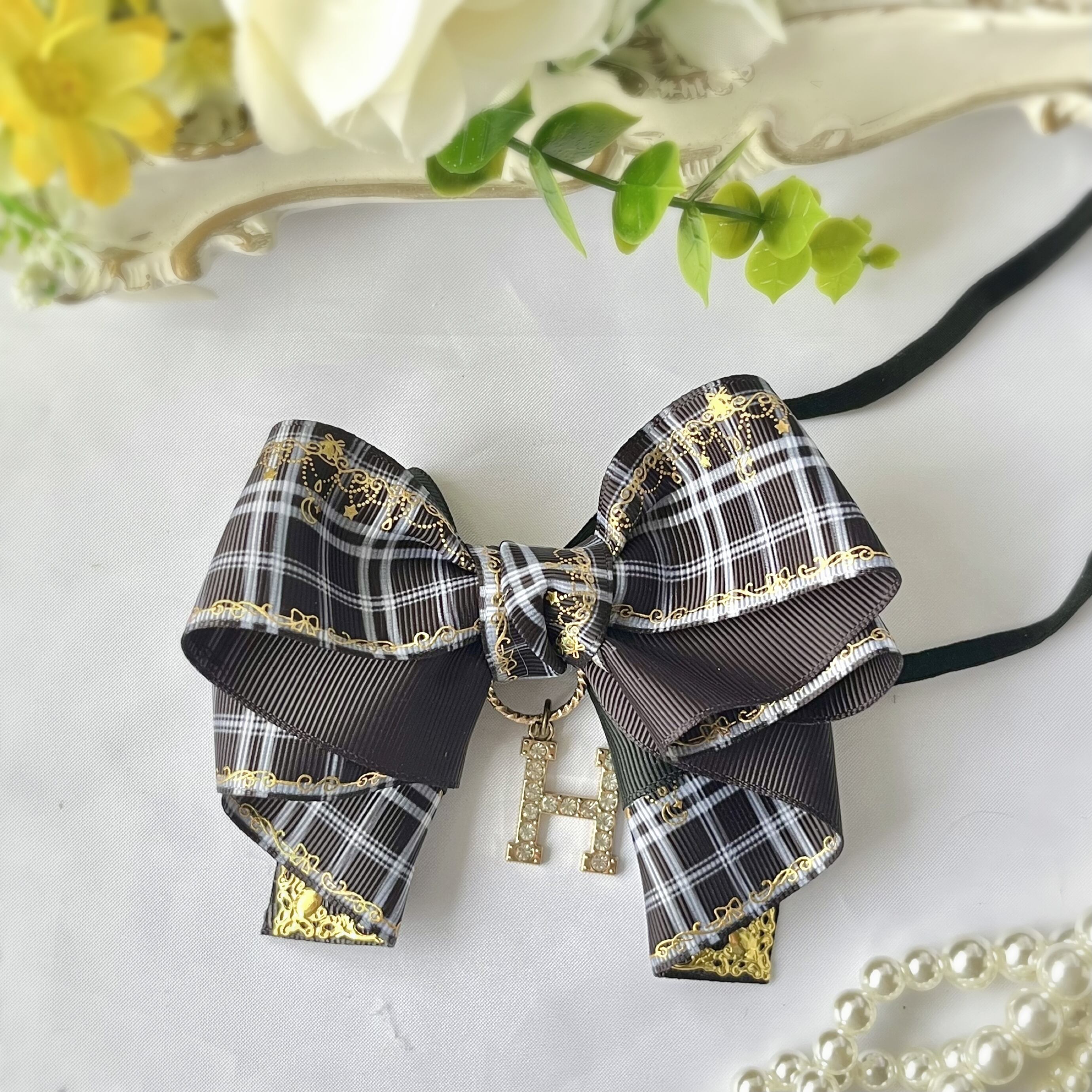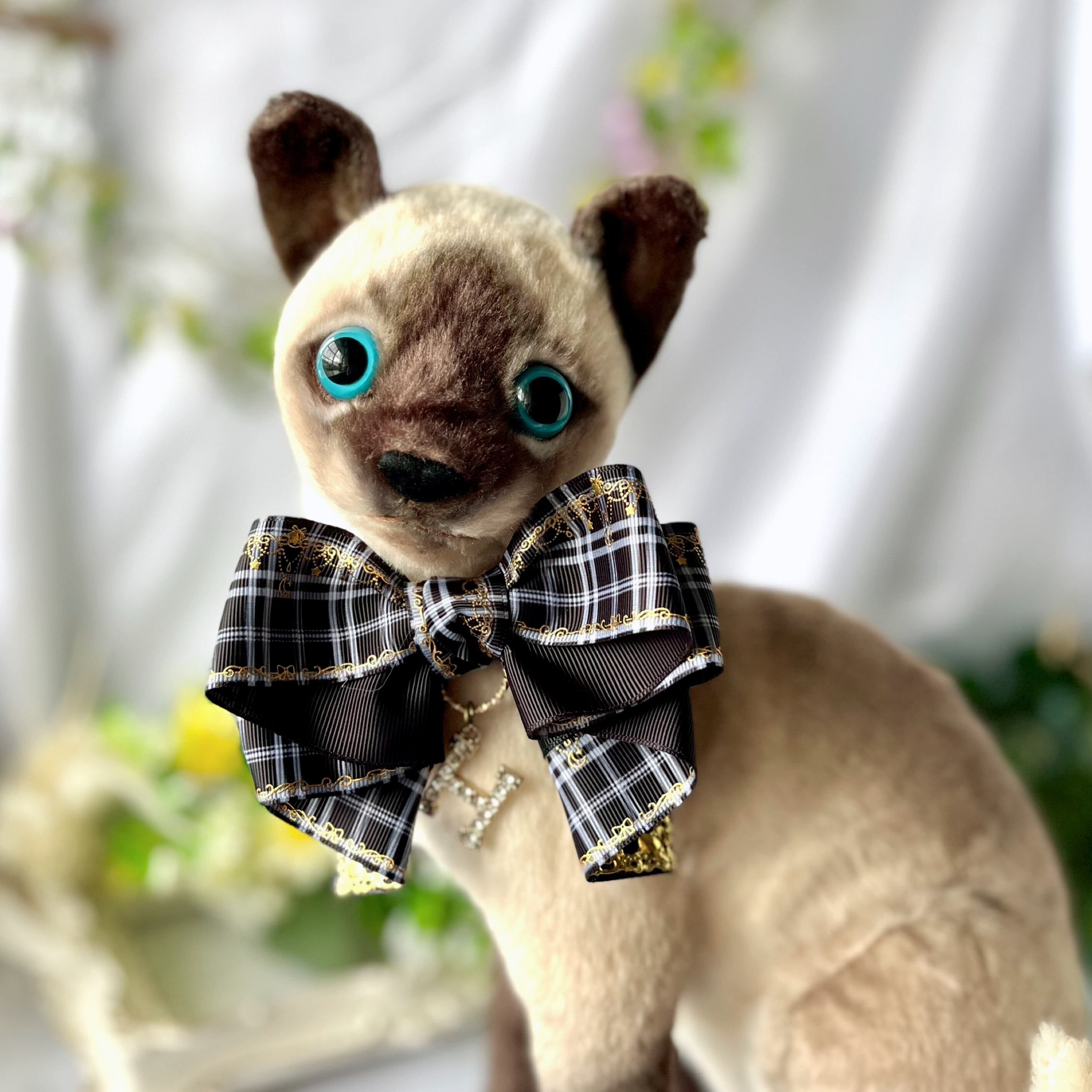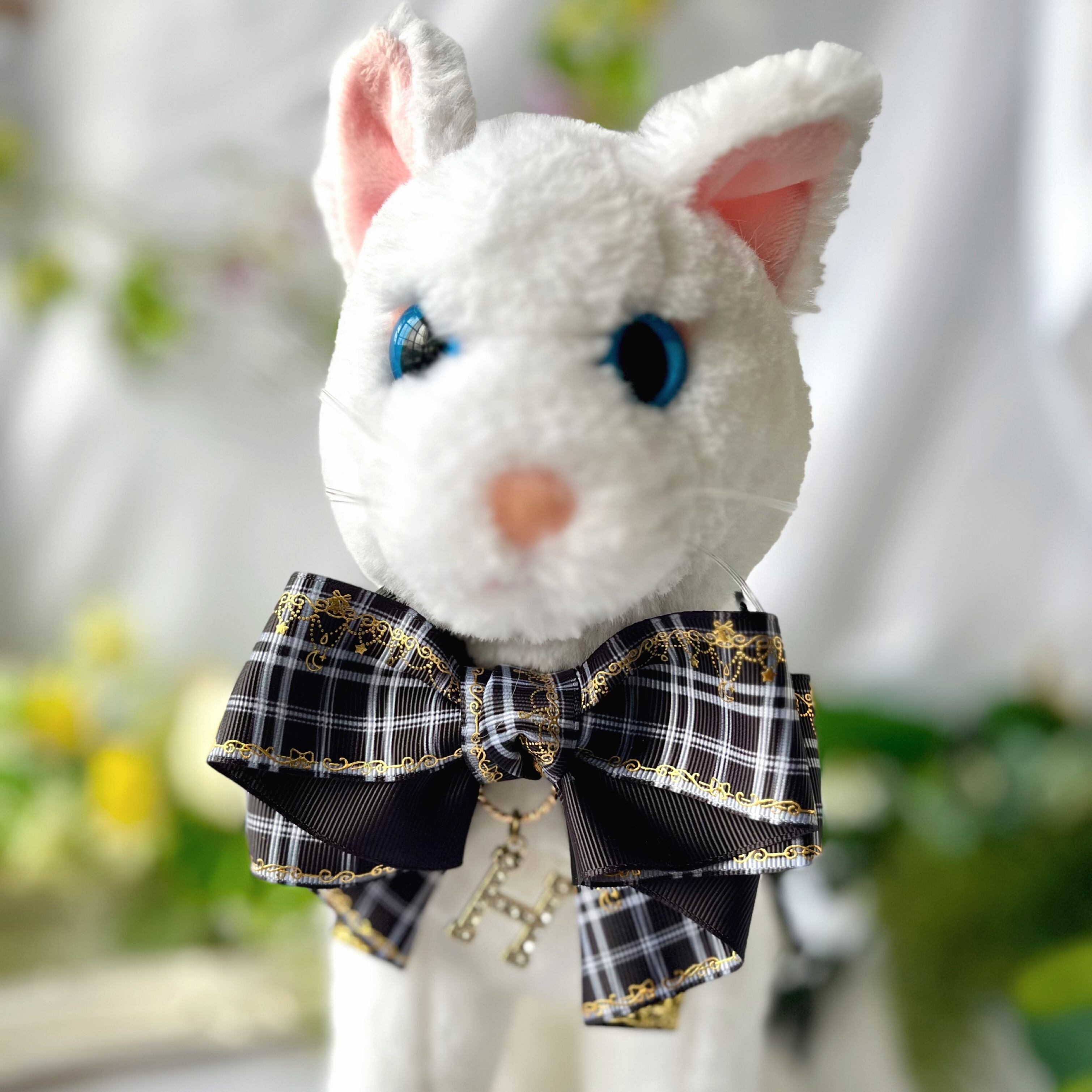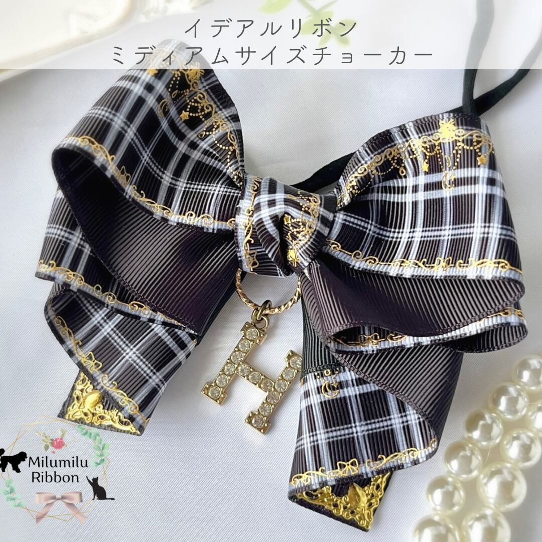 【大人BLACKチェック柄♡イデアルリボンミディアムサイズ♡チョーカー】お散歩にもジャマにならないサイズ イベント 撮影用 ギフト プレゼント 結婚式 ペット用チョーカー 犬 猫