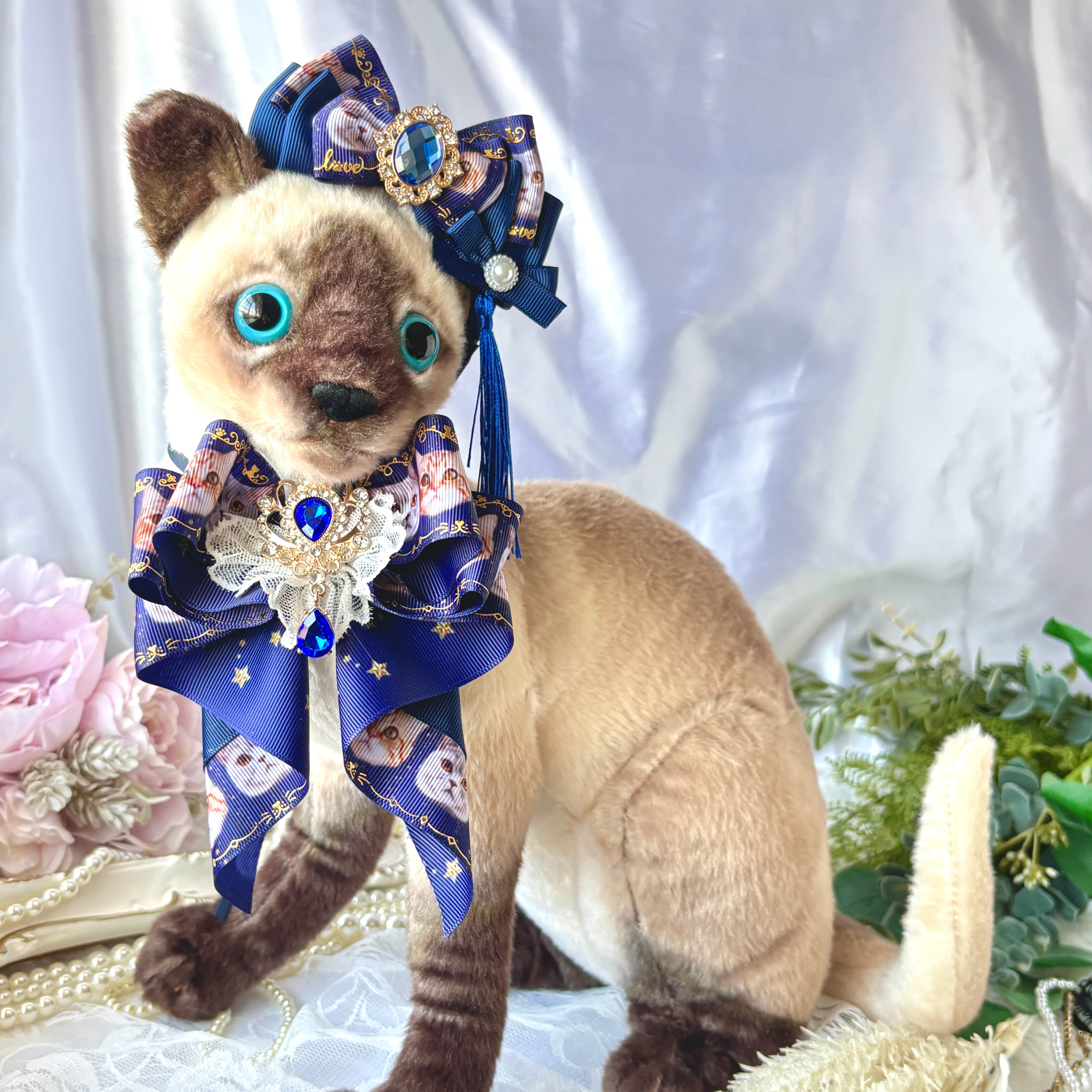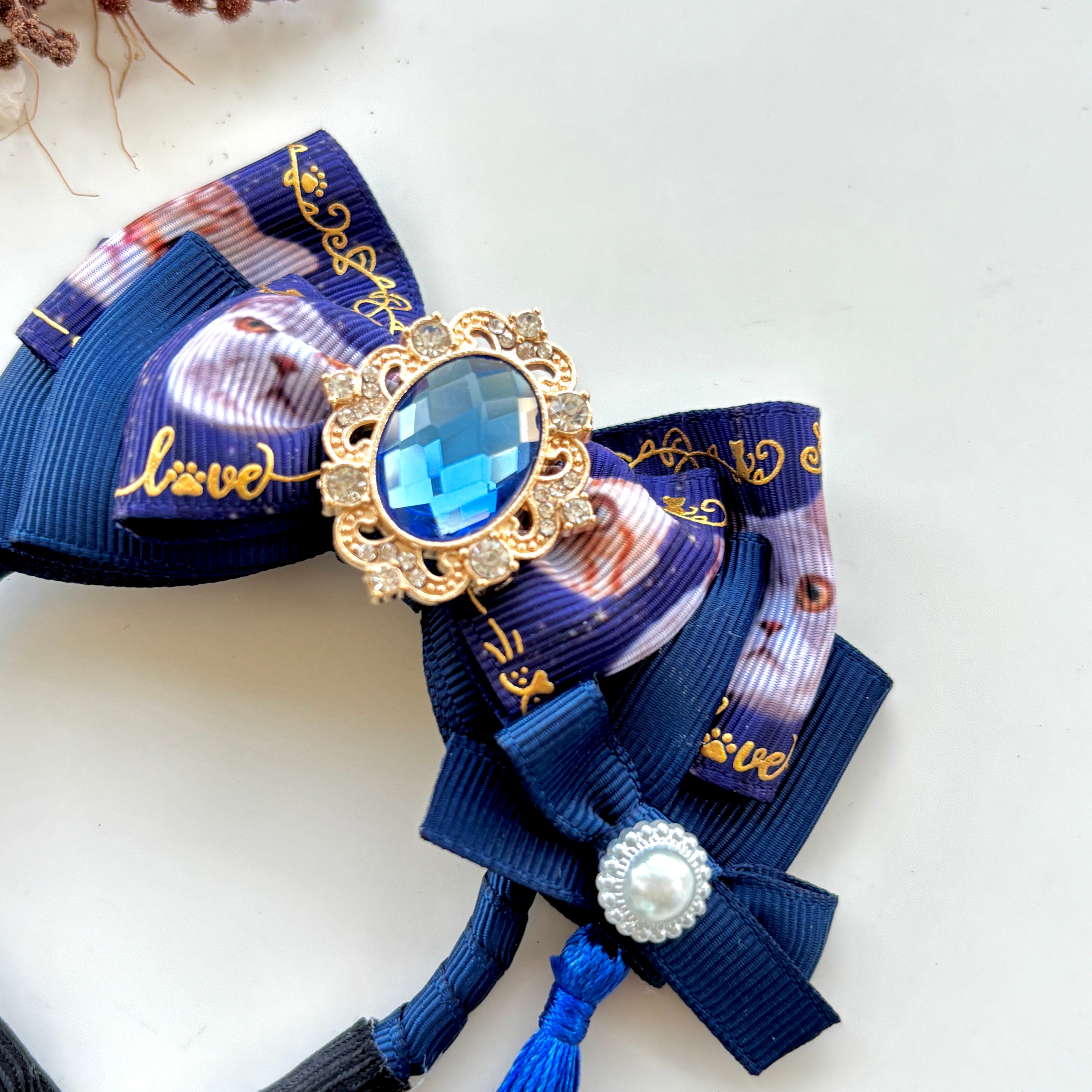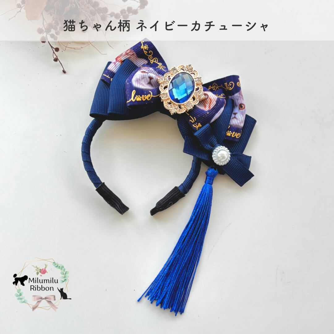 【ねこちゃん柄ネイビーカチューシャ】猫の日 猫柄 撮影用 ペット用 プレゼント イベント用 猫 犬