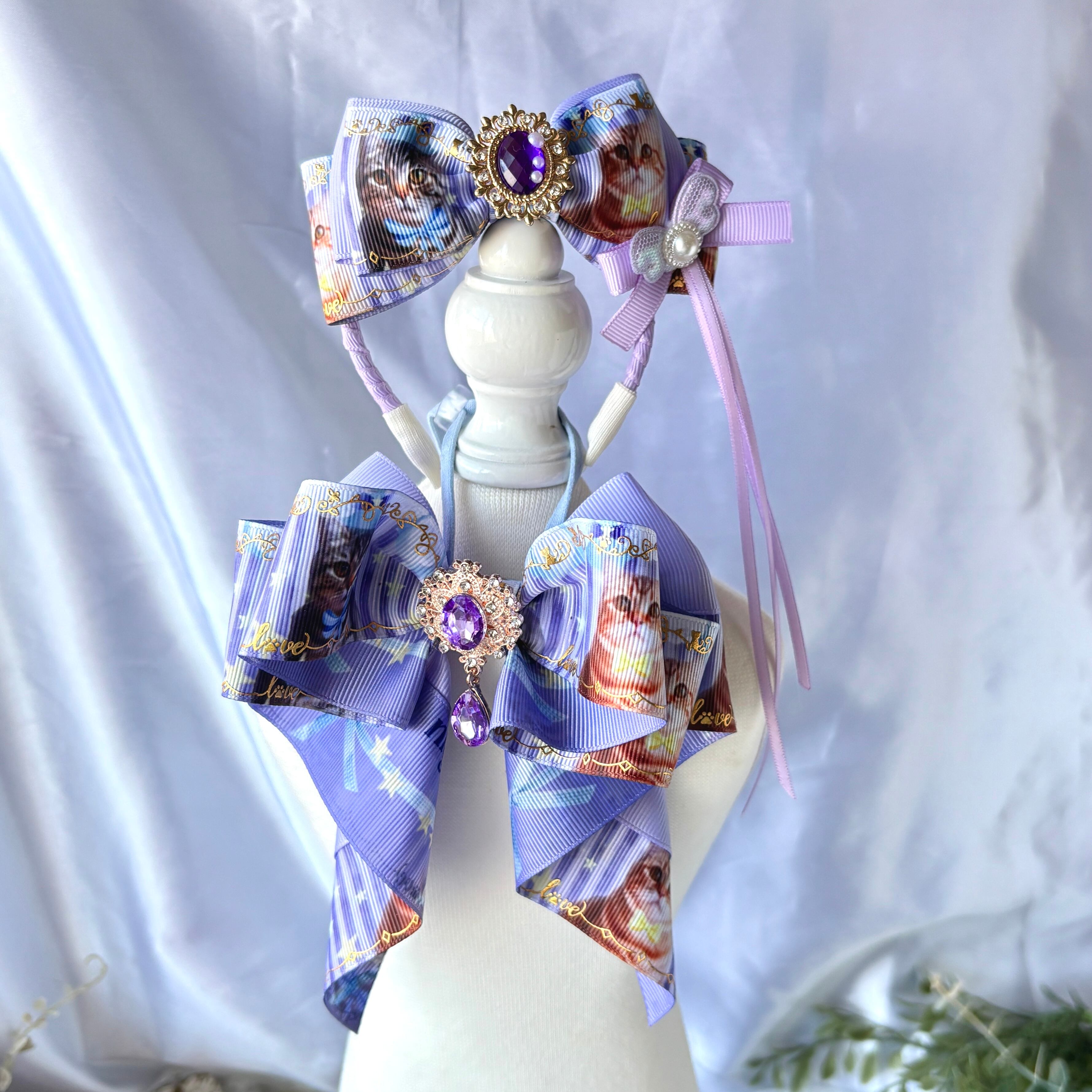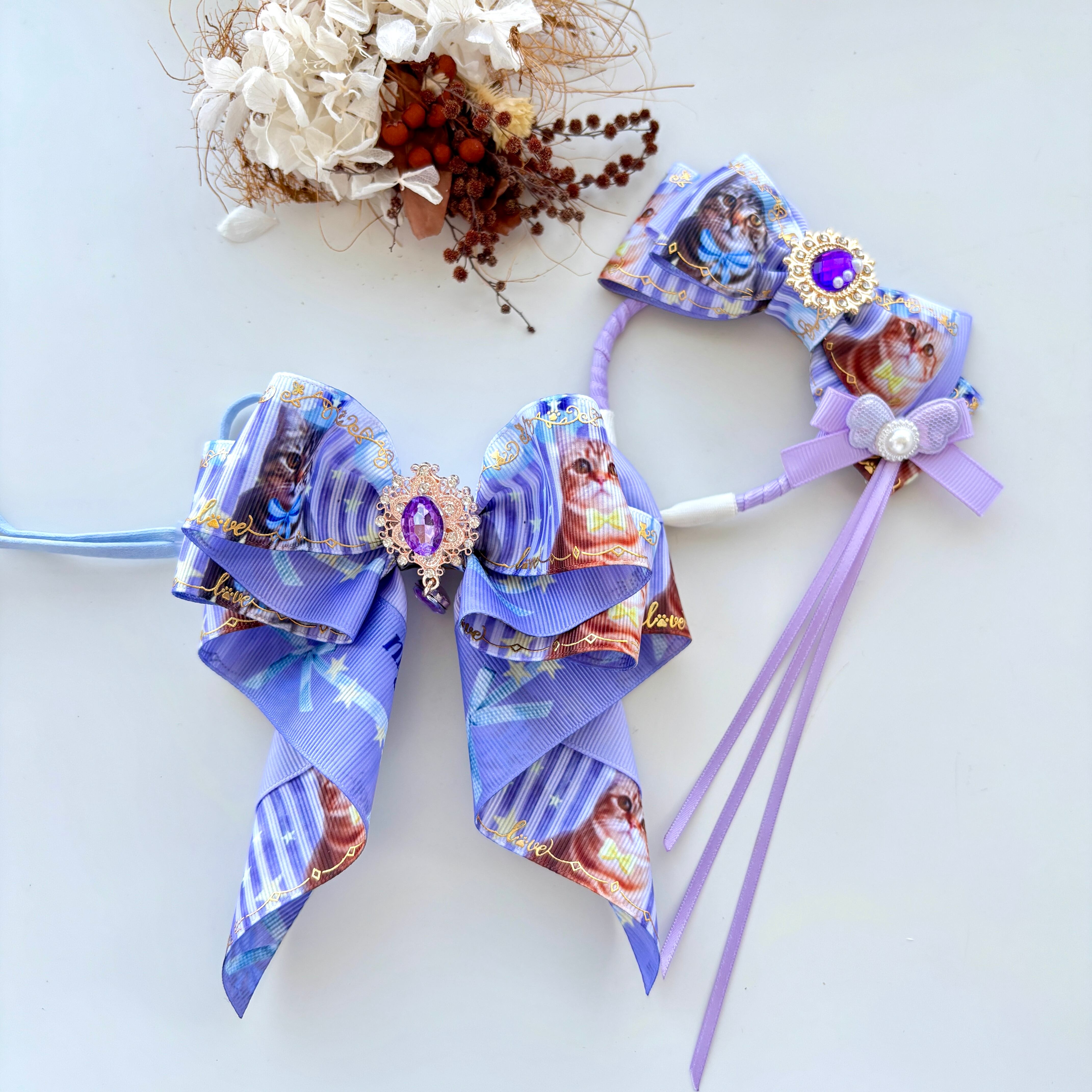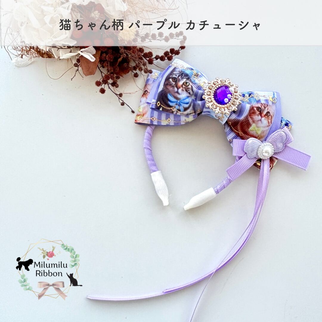 【ねこちゃん柄パープル色カチューシャ】猫の日 猫柄 撮影用 ペット用 プレゼント イベント用 猫 犬