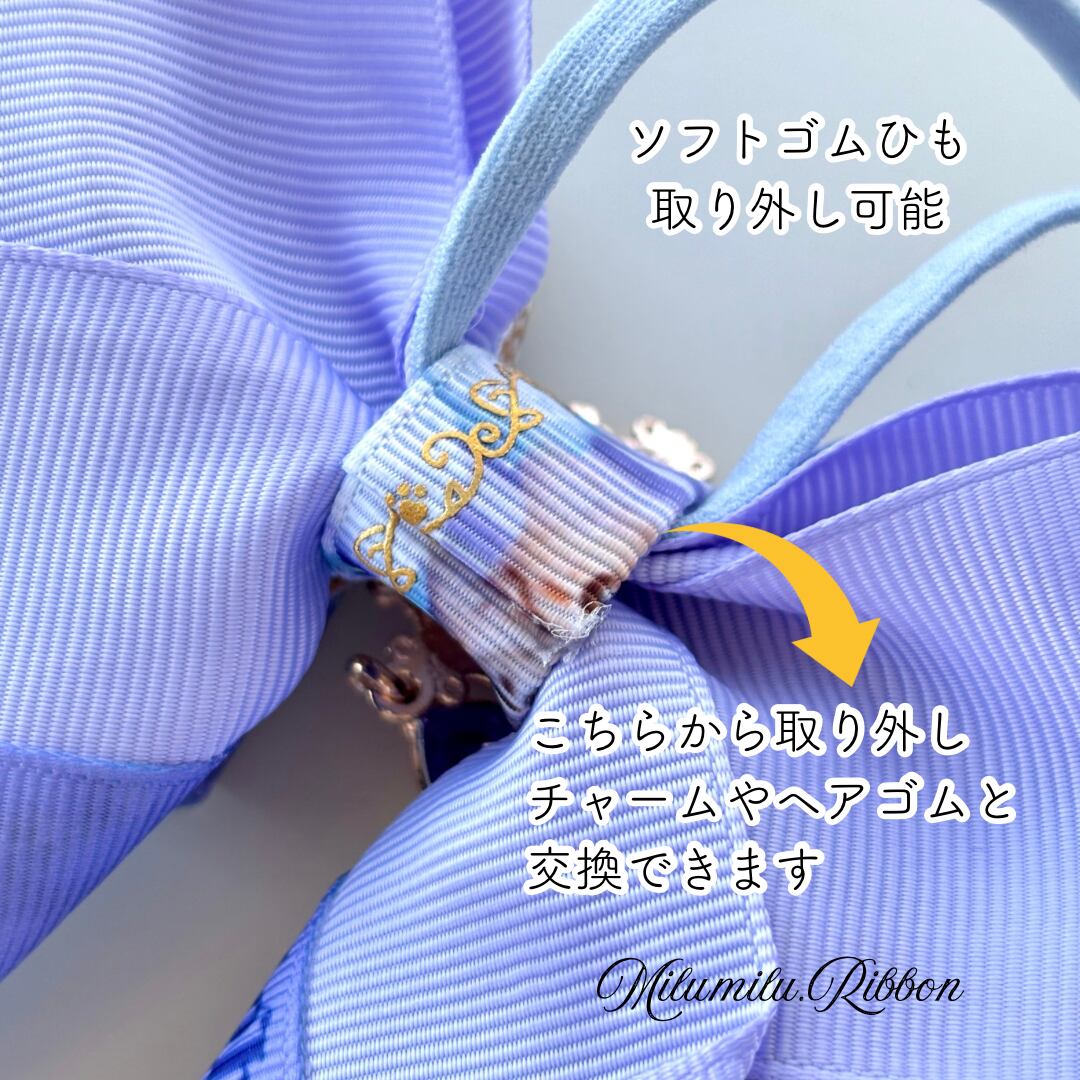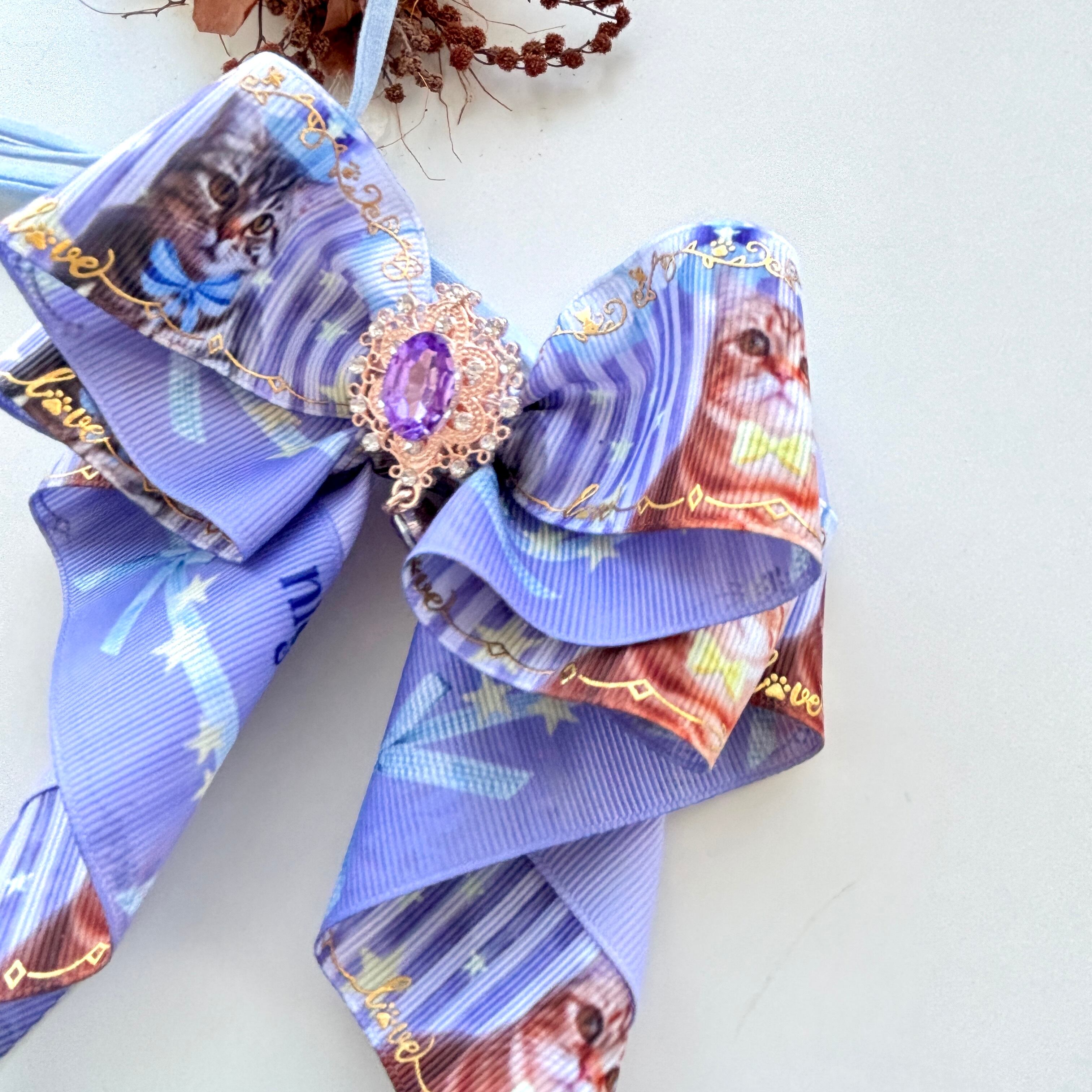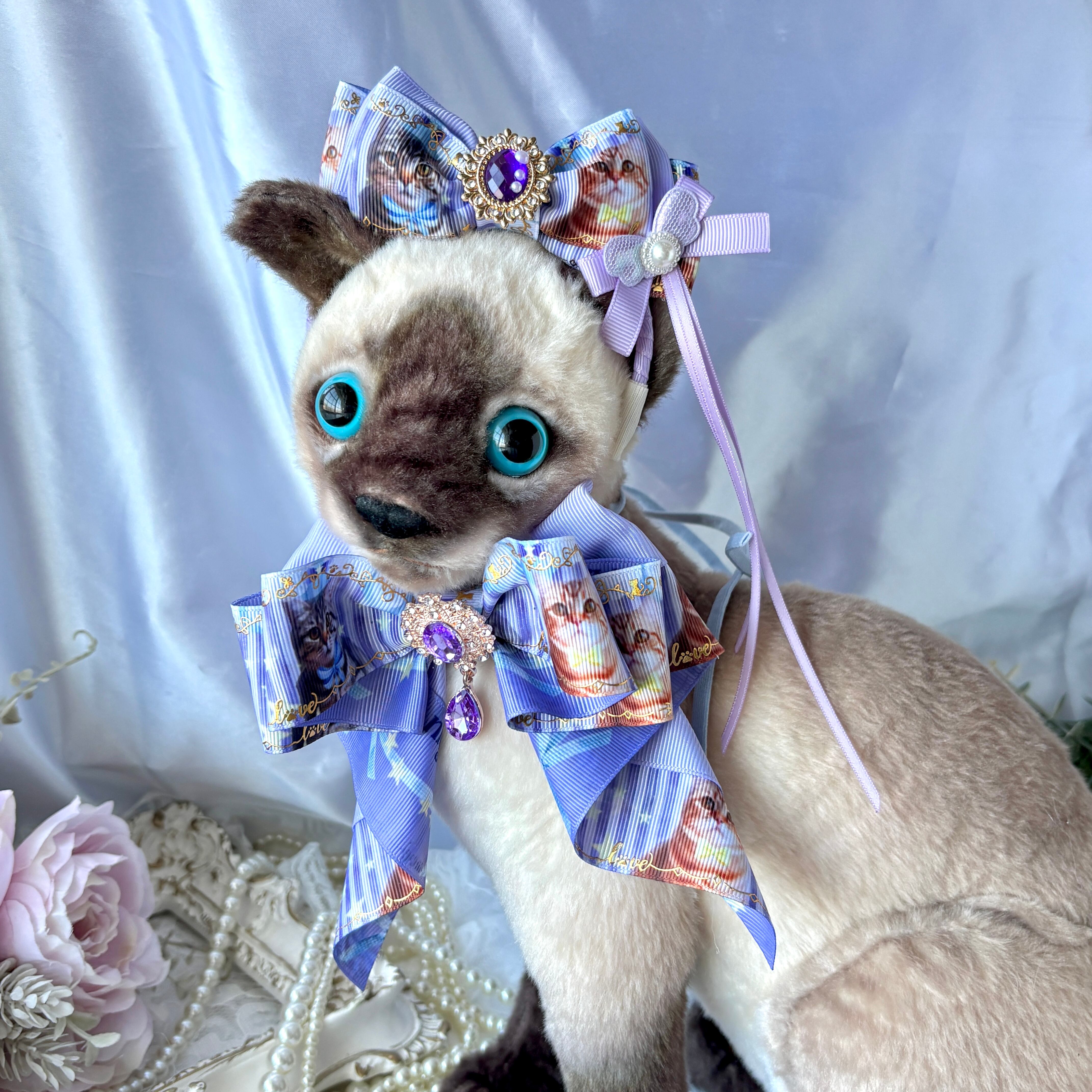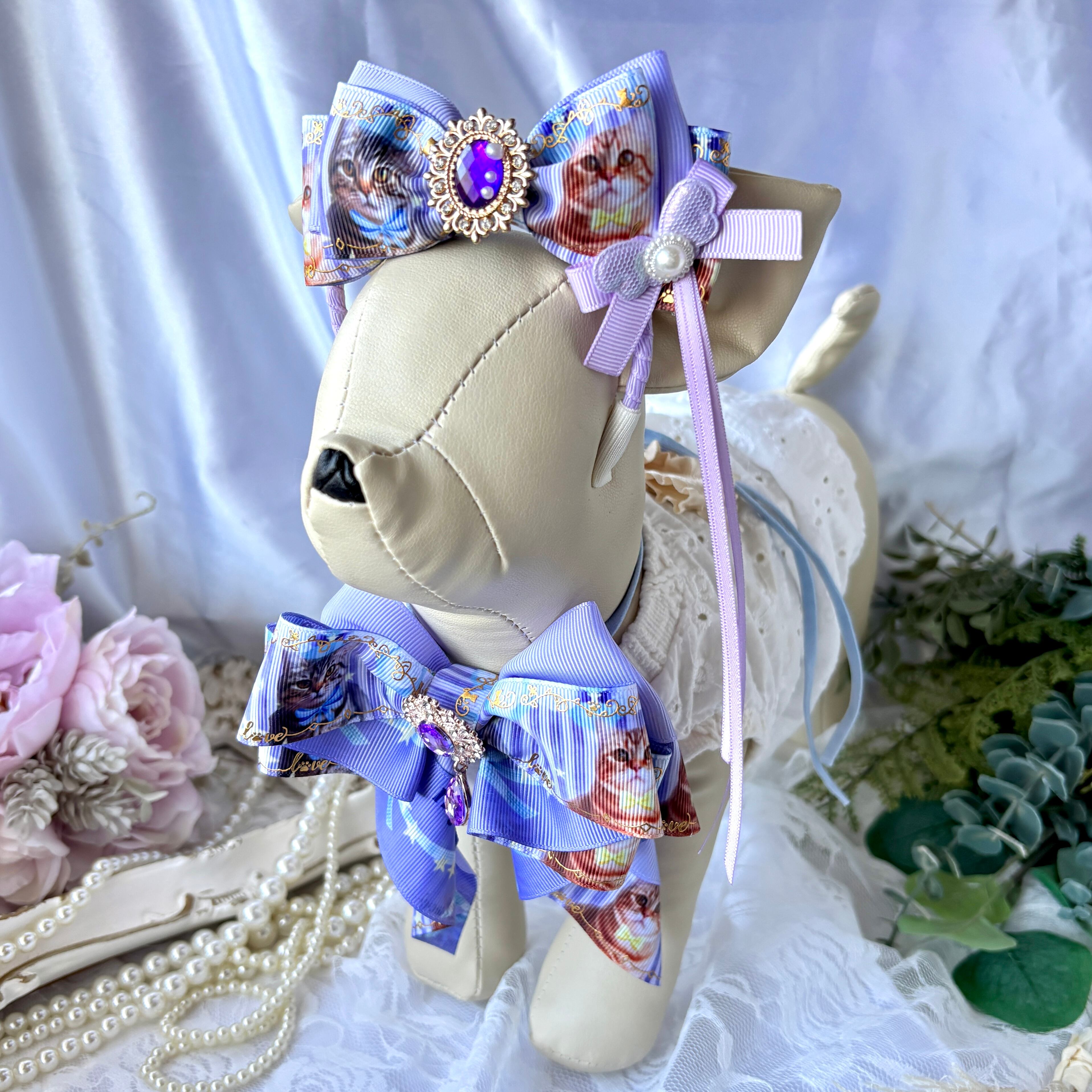 【猫ちゃん柄パープル色♡イデアルリボンチョーカー】ペット用 ギフト イベント 撮影用 ソフトゴム使用 犬 猫 猫の日 プレゼント用に