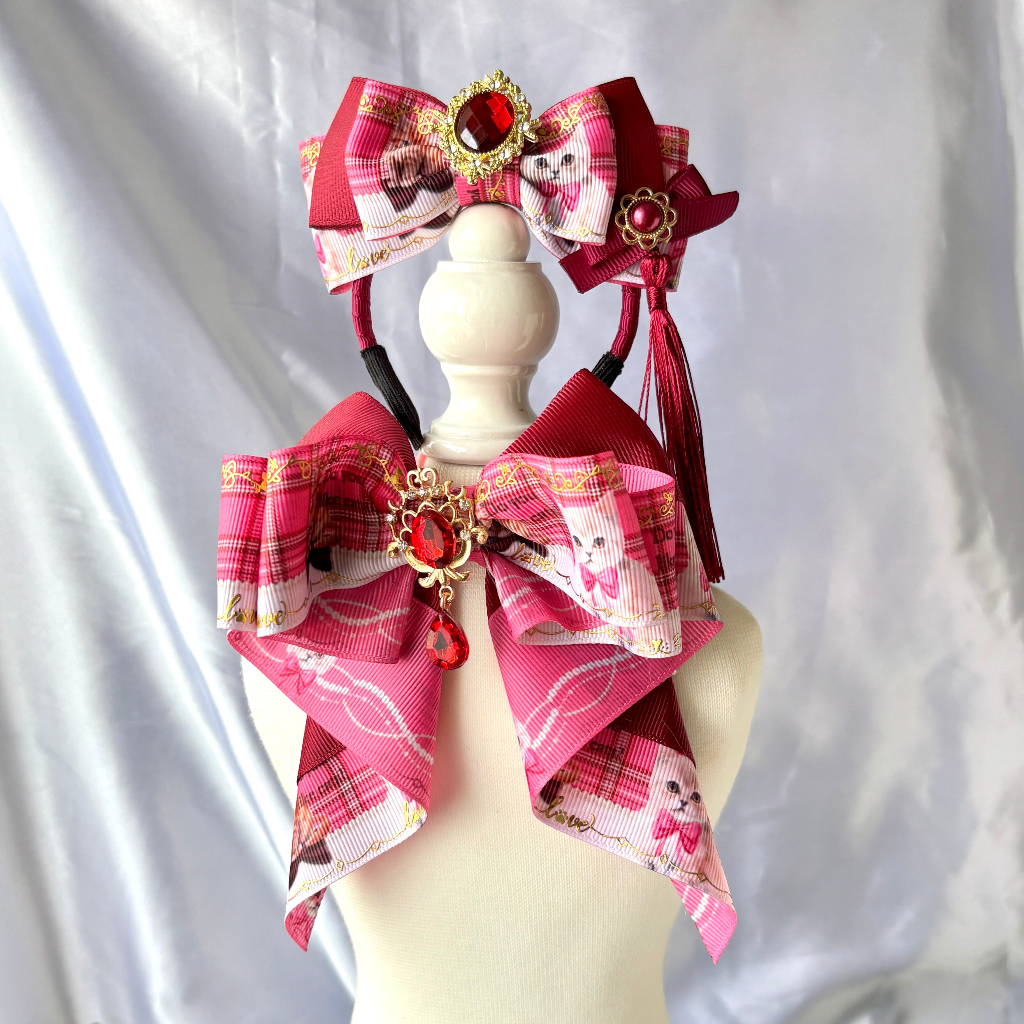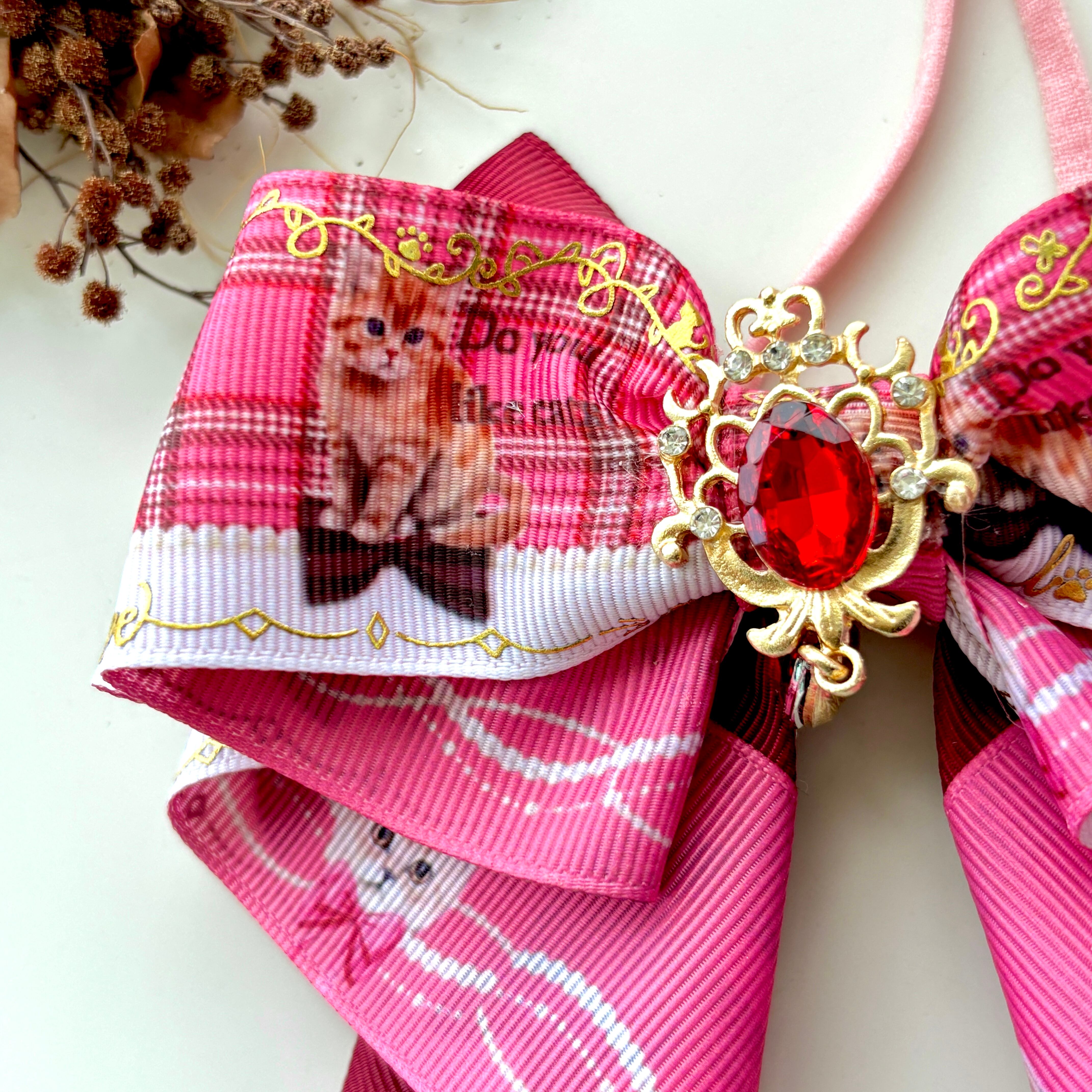 猫ちゃん柄 ボルドー色 idal ribbonチョーカー