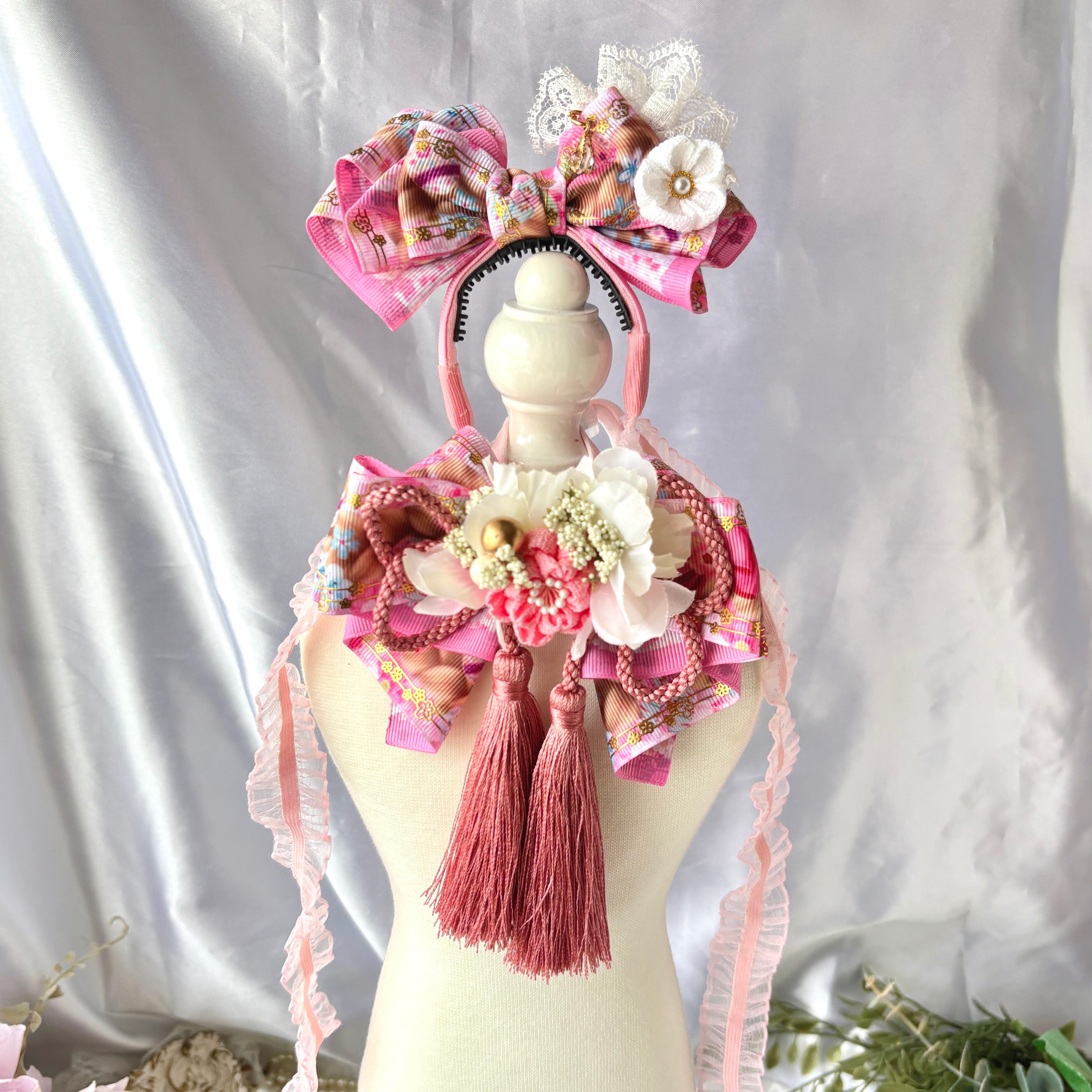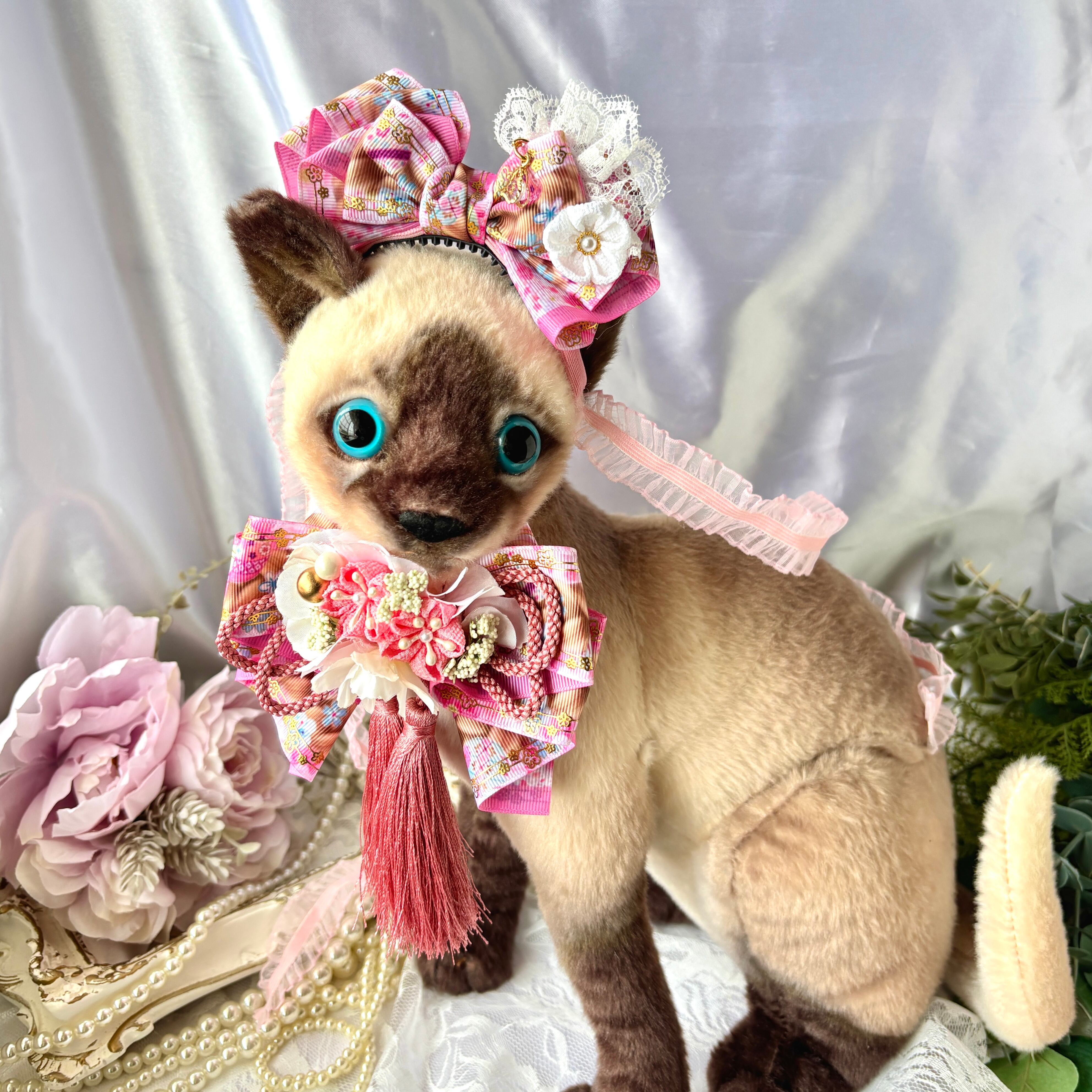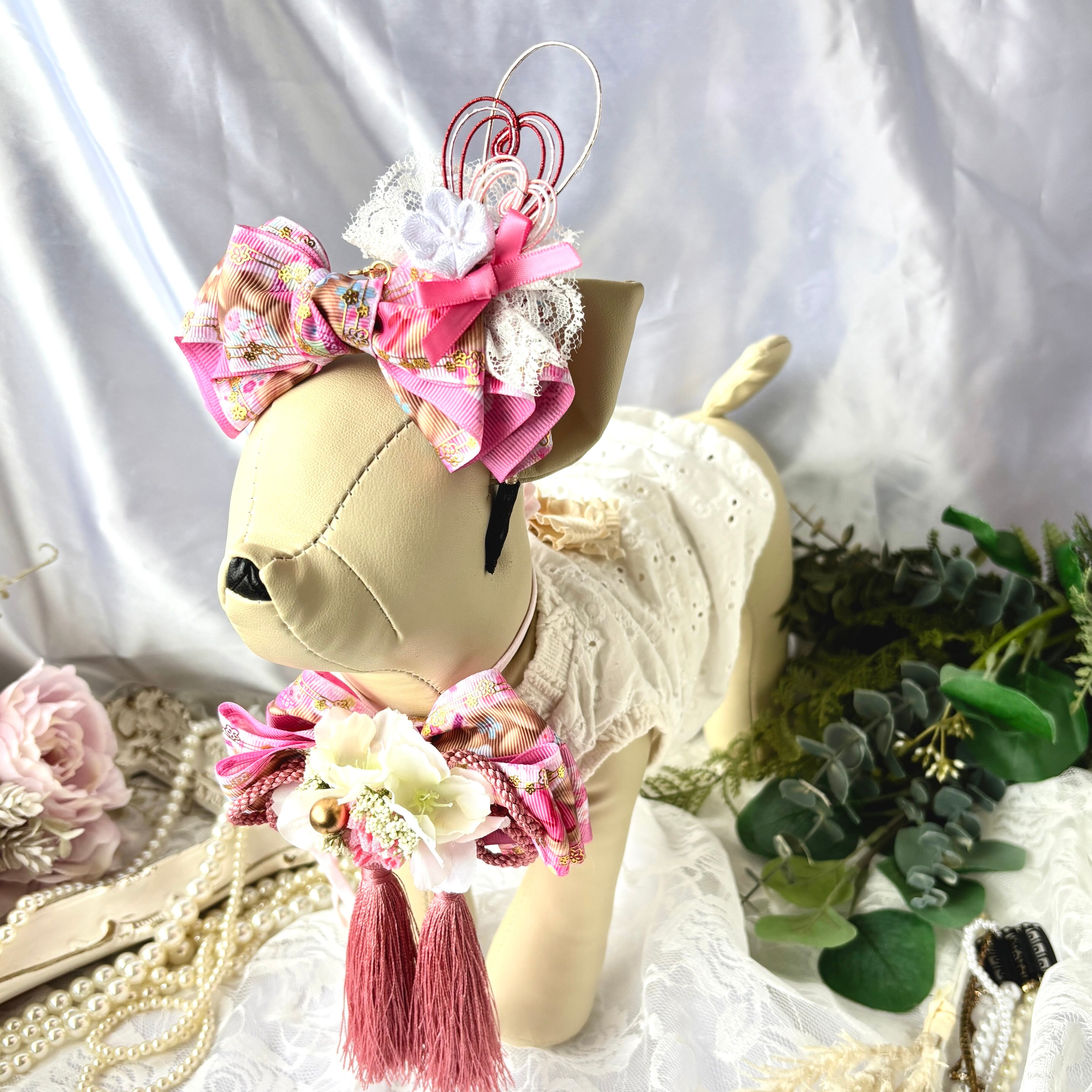 【春爛漫 和柄リボン チョーカー】ひな祭り お正月 ペット用 ギフト イベント 撮影用 ソフトゴム使用 犬 猫
